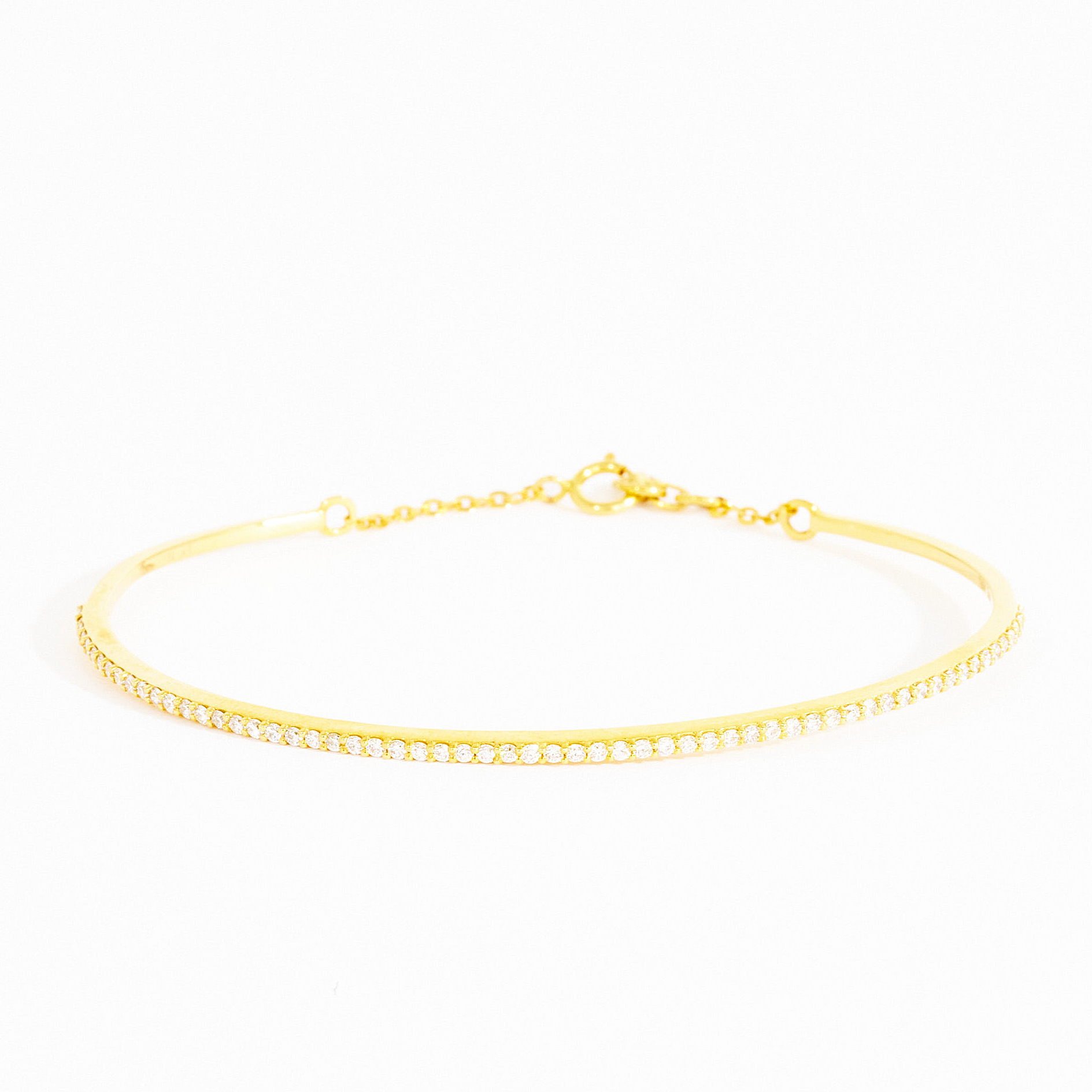 Ice out your wrist with a sparkling and stunning style when you slip on this timeless cuff bracelet that will have everyone looking on in envy. Crafted with care, this 14k solid gold bracelet is made of diamonds set in a four prong setting. Worn alone or stacked together for more evening wrist glam, this bracelet is the perfect accessory for the fashionista you are.