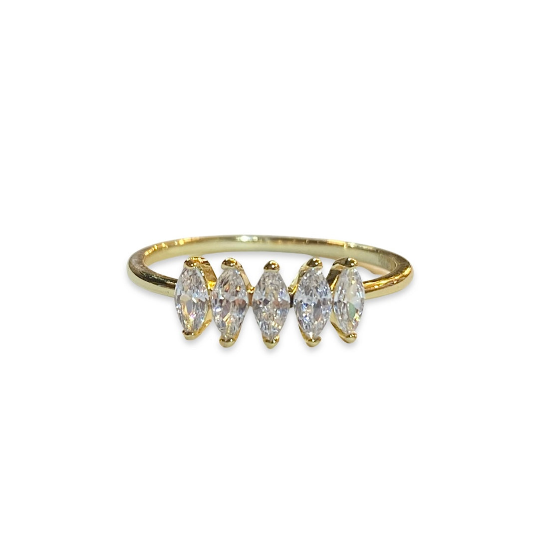 Add some sparkle to your ring stack with our Adriene Marquis Ring! Features a half cubic zirconia paved band and four marquise cut cubic zirconia stones in the center. Makes a nice gift for your special someone and can be stacked with other Noellery rings.