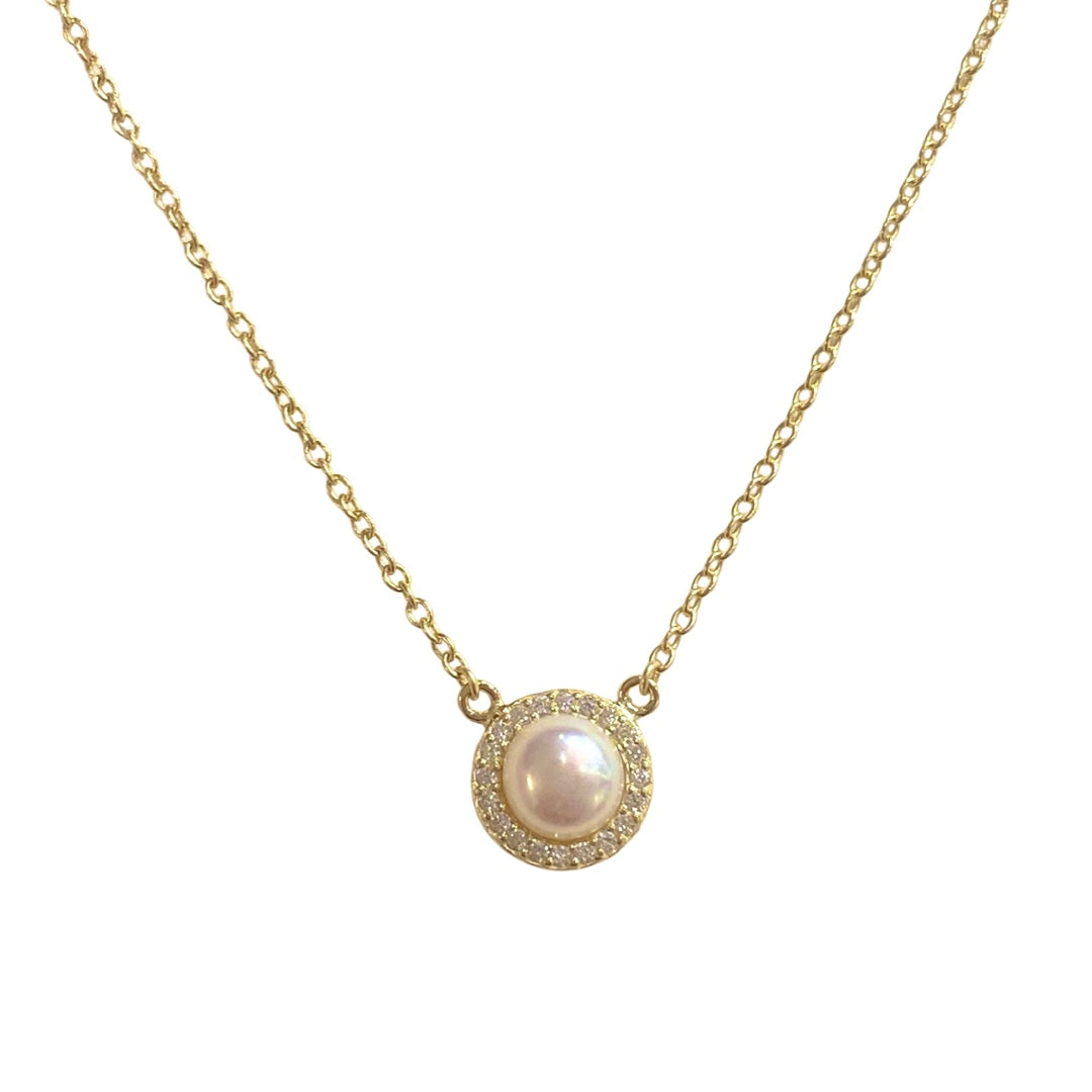 Gift our Pearlea Sparkle Necklace to the modern and elegant woman in your life, no matter the occasion! Features a small pearl charm, with cubic zirconia stones paved around in a halo, dangling from the shiny sterling silver chain. Elegant when worn alone but extra charming when layered with other shimmering Noellery necklaces and chokers! Match it up with any of our pearl earrings as your everyday accessories or to any special event!