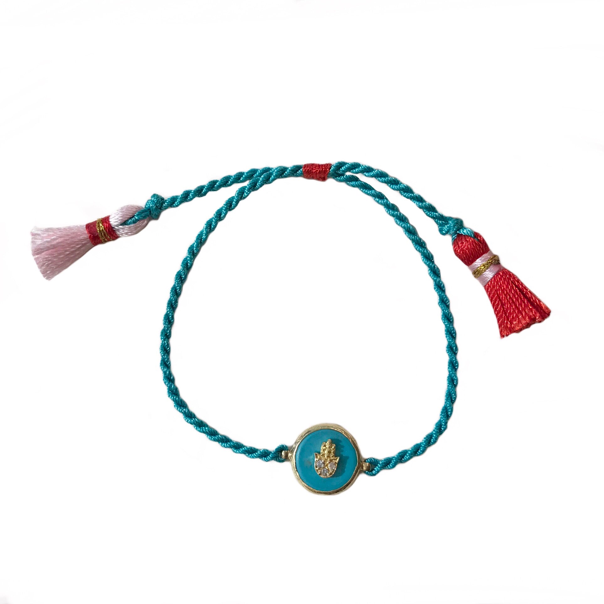 Our hamsa threaded bracelet is a glowing accessory that will make you shine while keeping it simple! This bracelet is comfortable to wear because of the adjustable thread that even looks great when stacked with other Noellery bracelets. The hamsa represents protection, making it the perfect gift to loved ones.