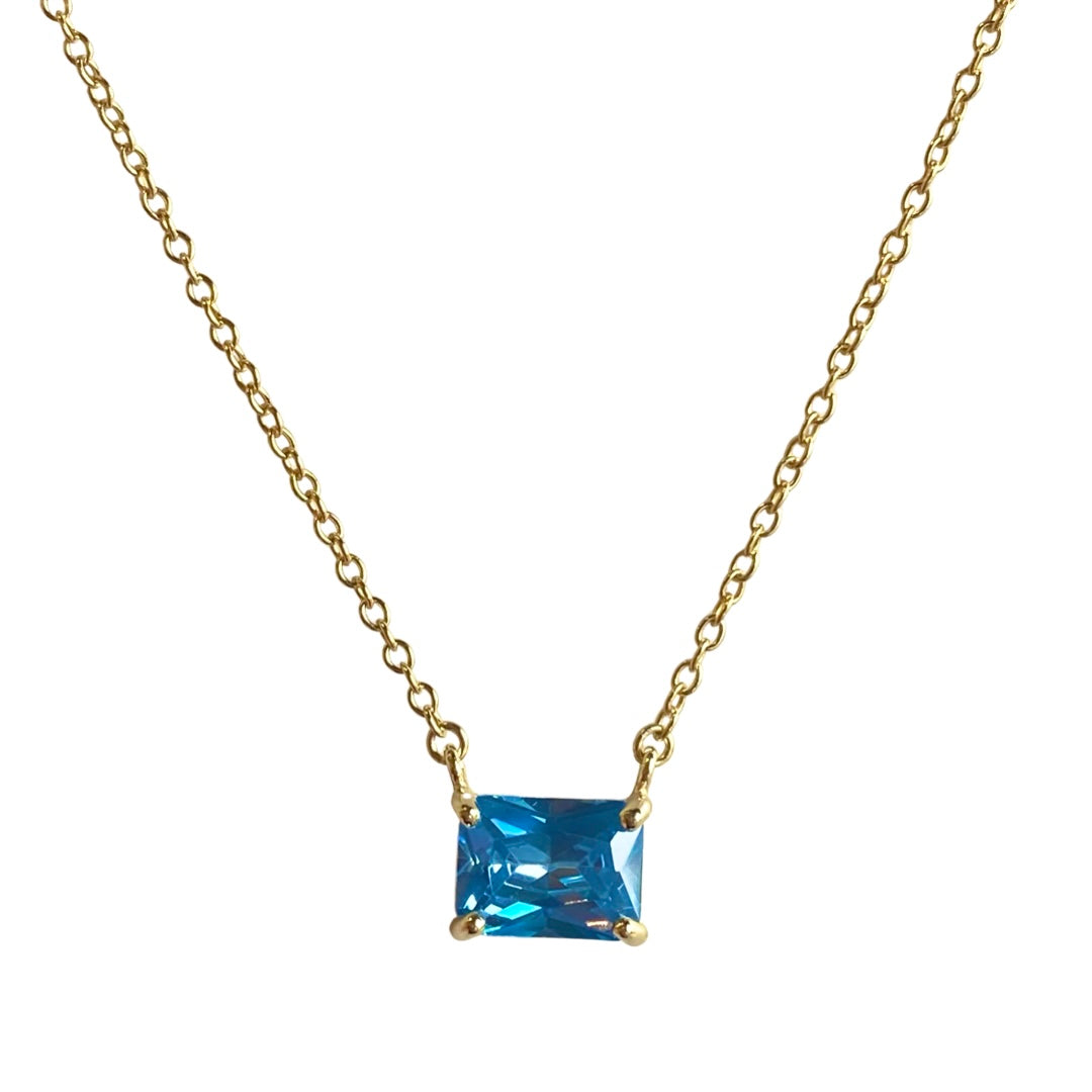 Create the perfect necklace layer with our dazzling Adriene Birthstone Rectangle Necklace today! With a shiny gold sterling silver chain, the rectangular cubic zirconia stone will sparkle under the sunlight with your every move! Makes a great gift for that special someone in your life and can be worn everyday with any outfit!