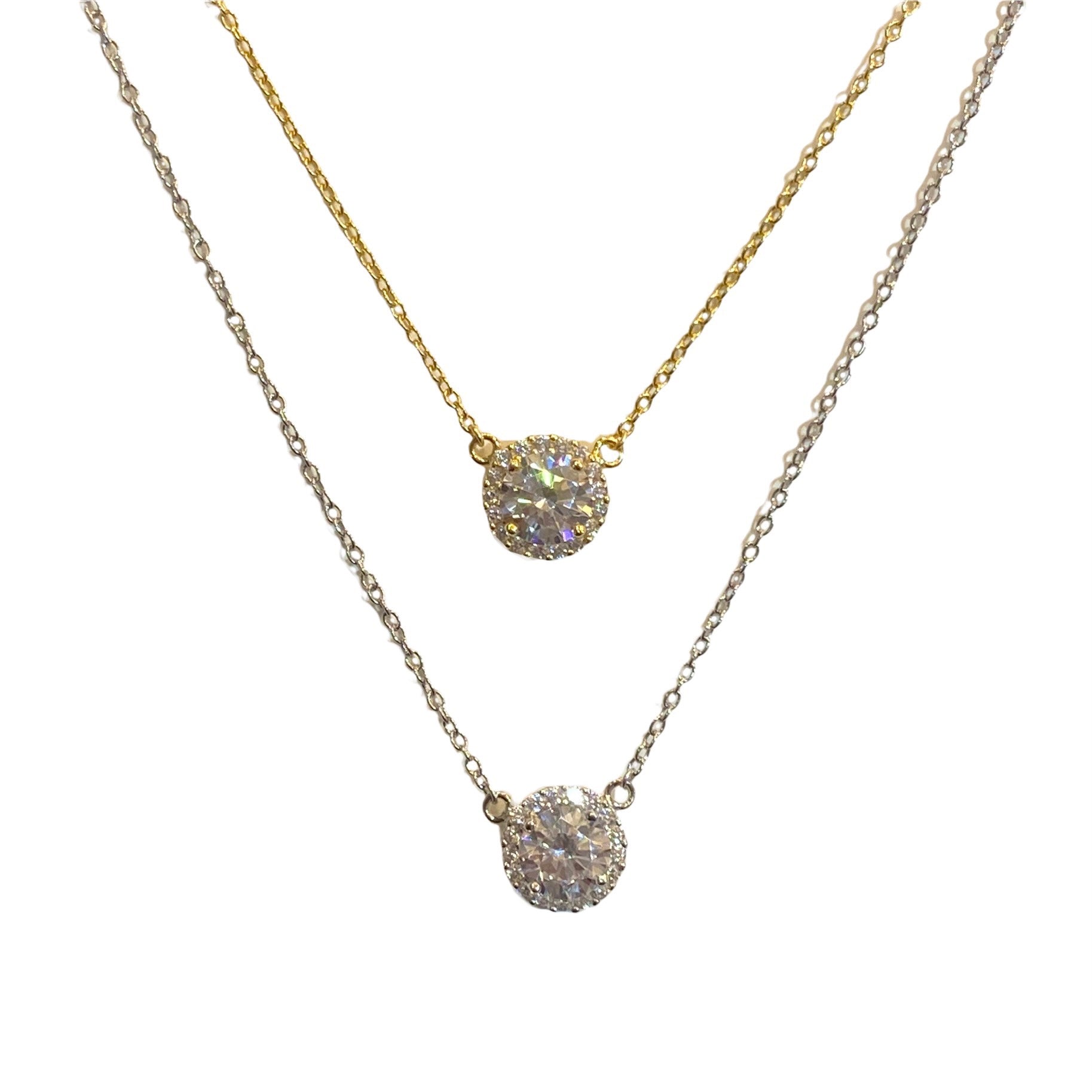 Beautifully crafted, our Adriene Round Necklace is a classic drop necklace for everyday wear. Features a stunning round cubic zirconia stone that is surrounded by a halo of smaller cubic zirconia stones. Shimmers day to night, and makes your outfit look effortlessly elegant when worn. Makes a wonderful gift for any occasion.