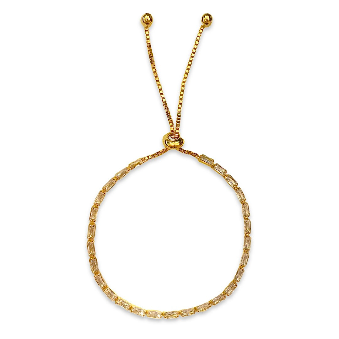 Add some bling to your wrists and adorn our dazzling Amy Baguette Adjustable Bracelet! Adjustable to fit most wrist sizes, the sparkling baguette cubic zirconia stones will glimmer under the spotlight with every twist and turn of your wrist! Stack it with other Noellery bracelets and cuffs to add more sparkle to your day!