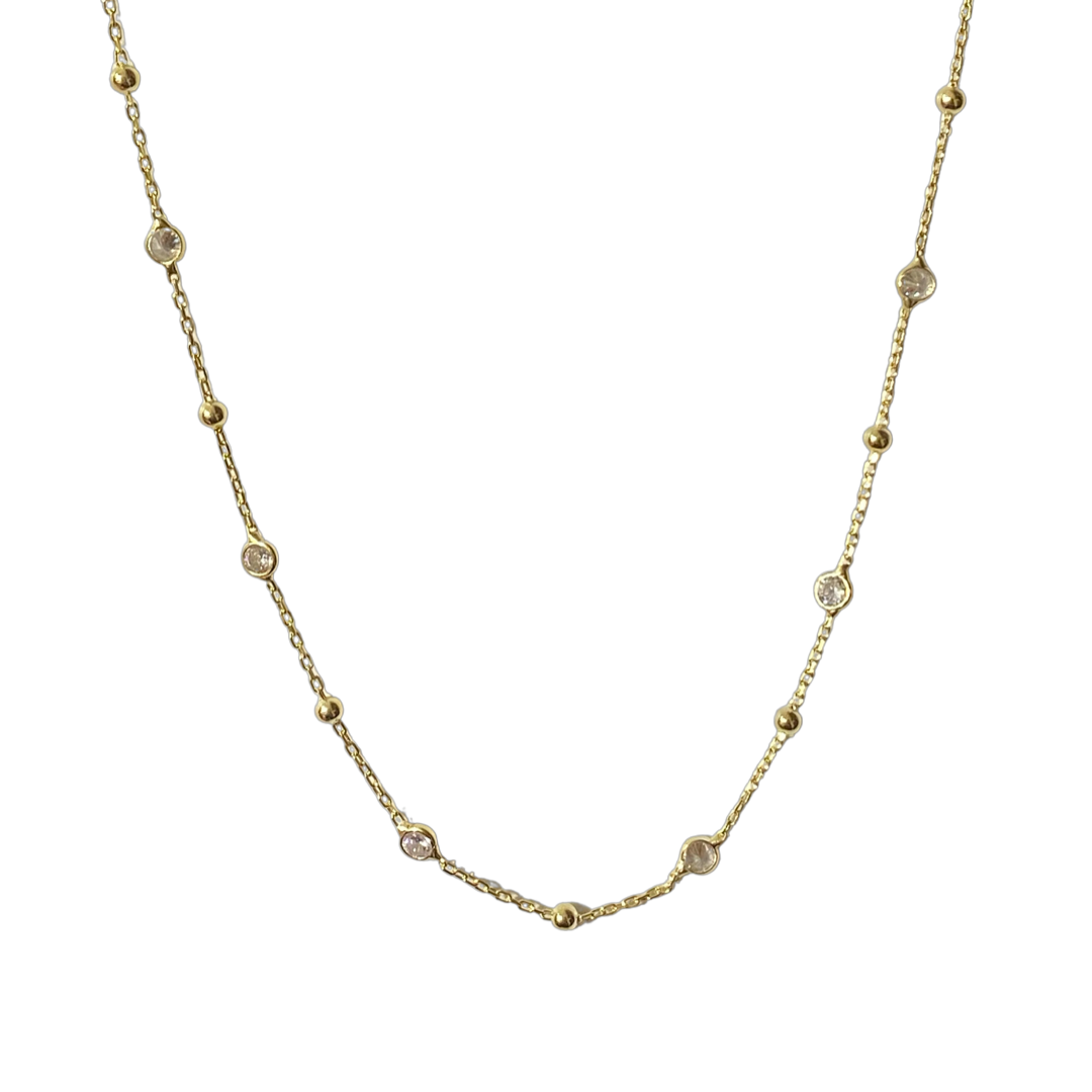 Up your sparkle factor with our must have Amy Bezel Necklace. Features 10 stations of cubic zirconia stone bezels that wrap all around your neck. Makes the perfect necklace to add to your layers, or looks just as beautiful when worn solo on its own. Dainty and classic- Makes a wonderful gift for your loved one on any occasion.