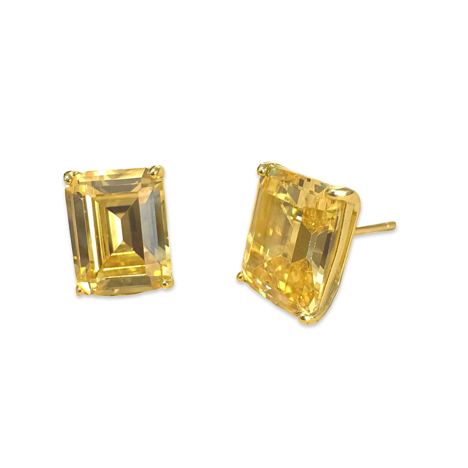 The perfect pair of everyday studs for the modern woman. Features an emerald cut cubic zirconia stone in a four prong basket setting. Makes a perfect addition to any ensemble.