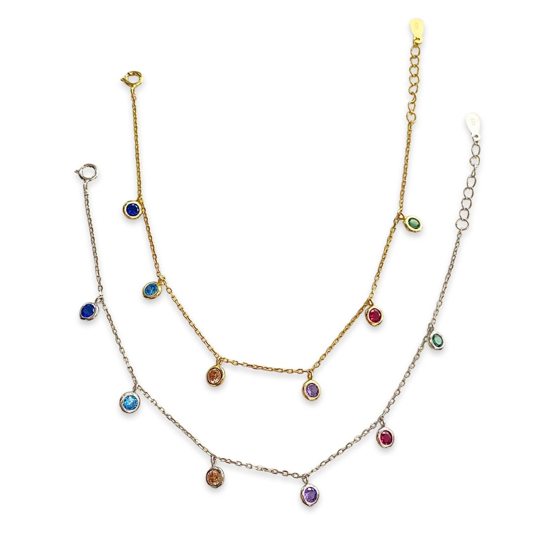 A modern bezel bracelet is the perfect piece to wear everyday. This must have bracelet features five beautiful round bezel charms hanging from a thin rolo chain. Looks dainty and fabulous stacked with other Noellery bangles or worn as an elegant piece on its own.