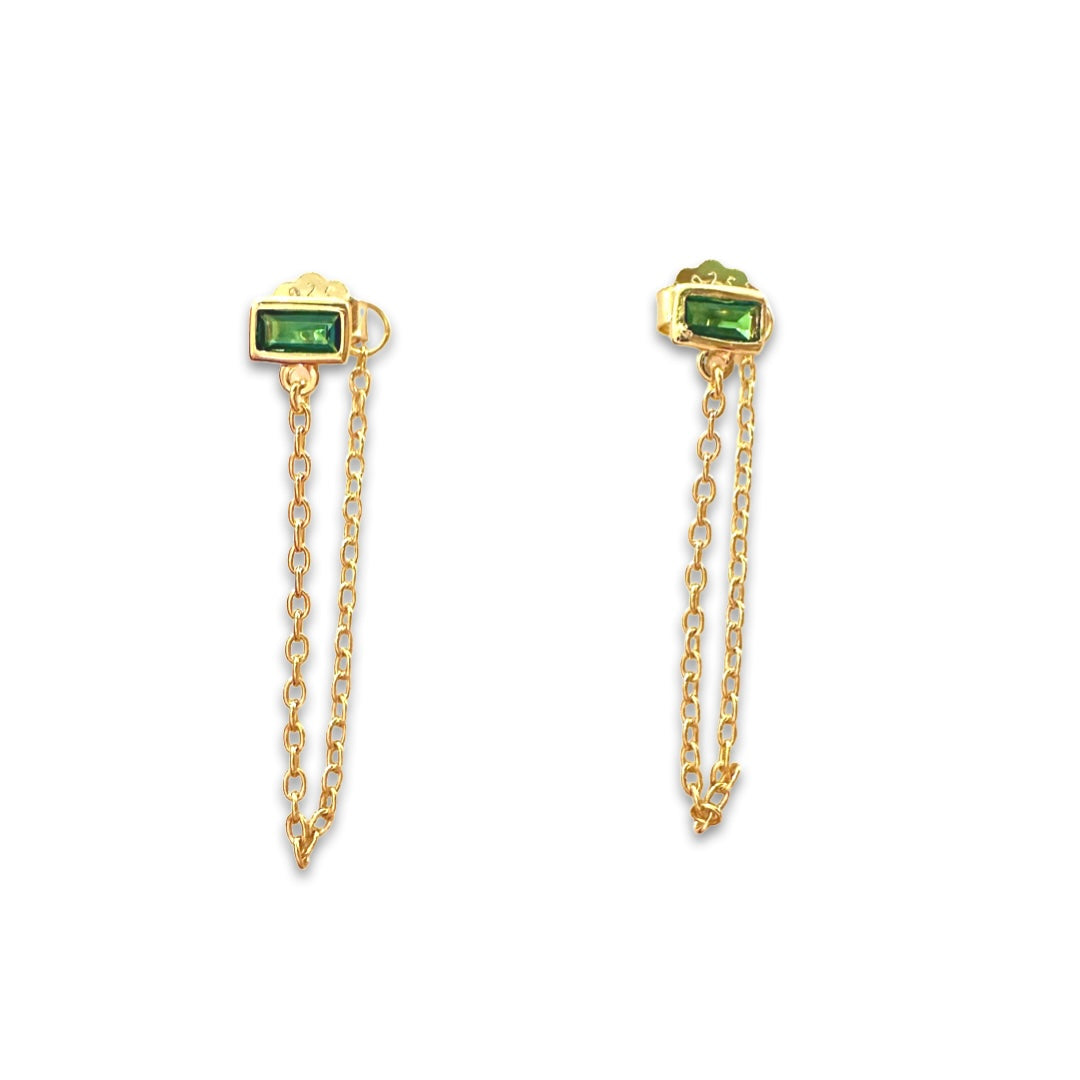 Our Amy Sparkle Chain Studs are a must have for all the dainty earring lovers out there! Features a cubic zirconia baguette stone stud with a dainty chain that dangles from it and wraps around your lobe to the post backing. Can be worn as your everyday go to accessory, with your hair up or down, to complete that chic modern look. For those with multiple piercings, this chain stud earring can be stacked with other Noellery earrings to add more sparkle to your day!