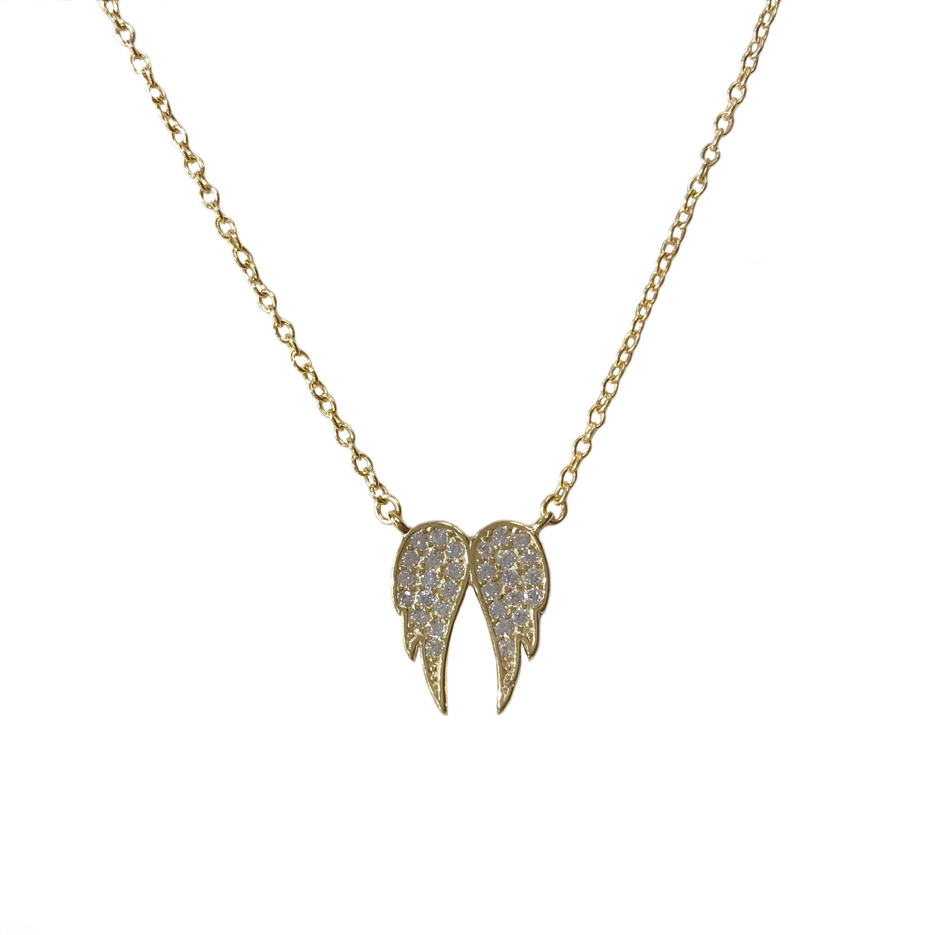 Our Guardian Angel Wing Necklace makes the perfect gift for loved ones. Features clear cubic zirconia stones paved angel wings that hang daintily from the shiny sterling silver chain. May you always have an angel by your side.