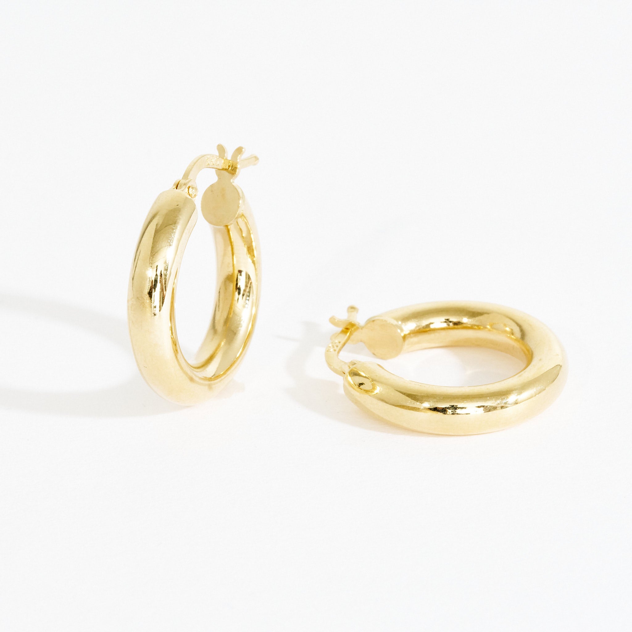 Bold enough to draw everyone’s attention but lightweight for all day wear, adorn your ears with these classy 14k solid gold hoops. A classic staple in every modern and trendy woman’s jewelry box, these polish to shine hoops pair well with any casual or dressy attire. Worn solo or stacked with other shimmering earrings that scream you, these plain 14k solid gold hoops are great for everyday wear and will be the only pair of earrings you will never wish to part with.
