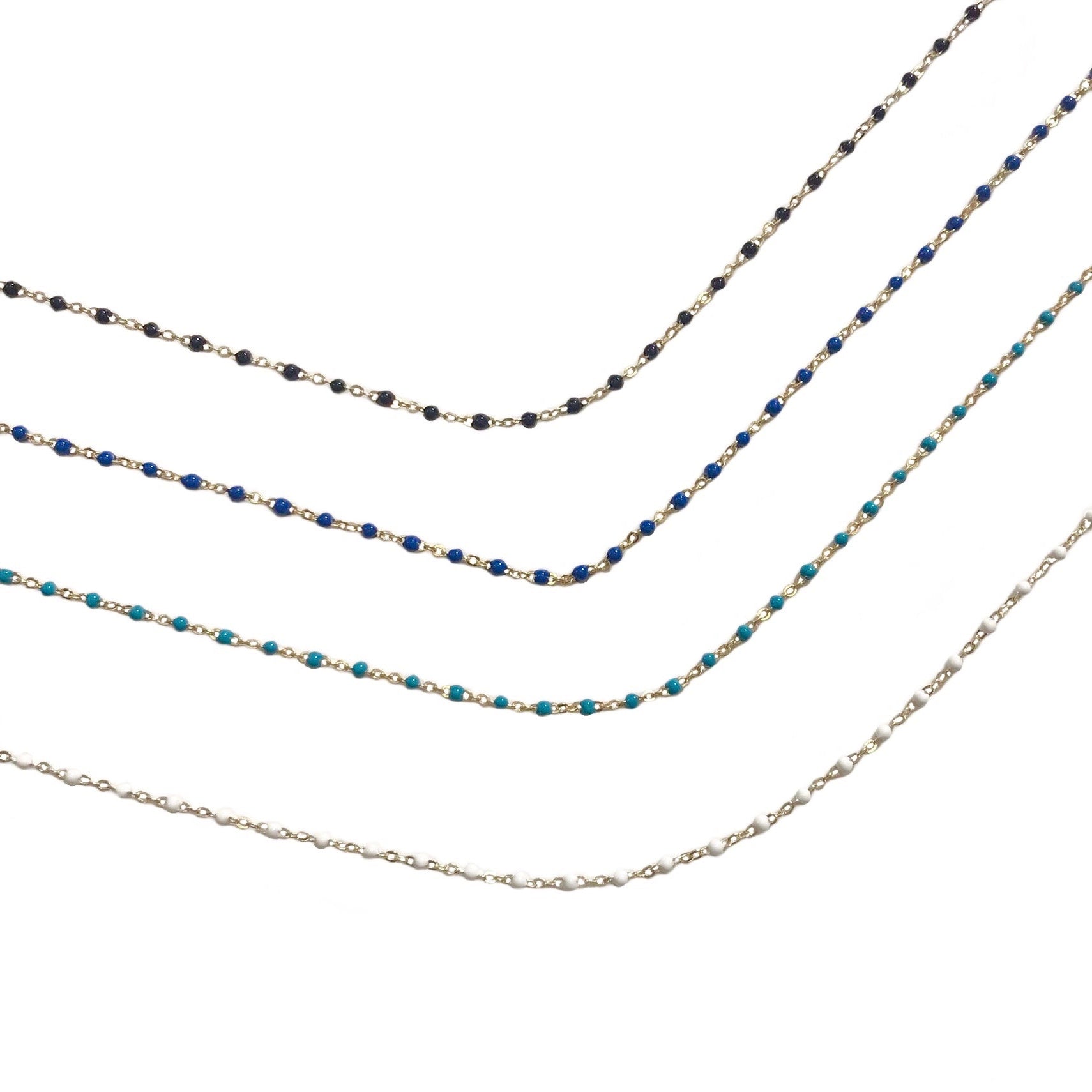 Wrap your wrist with our dainty color bracelet. Features a fine chain patterned with a color of beads. Looks great stacked with other Noellery bracelets, but looks just as lovely when worn on its own.