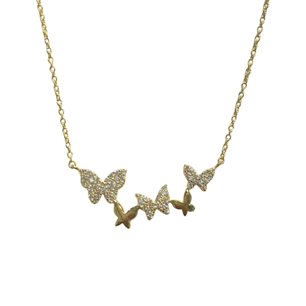 Spread your wings and flutter through the day with our Butterfly Cluster Necklace! Features a cluster of butterflies, three with are paved with cubic zirconia stones and two that are plain. A heart fluttering gift for your loved one that can be layered with our other Noellery necklaces or matched with our Noellery butterfly studs and rings!