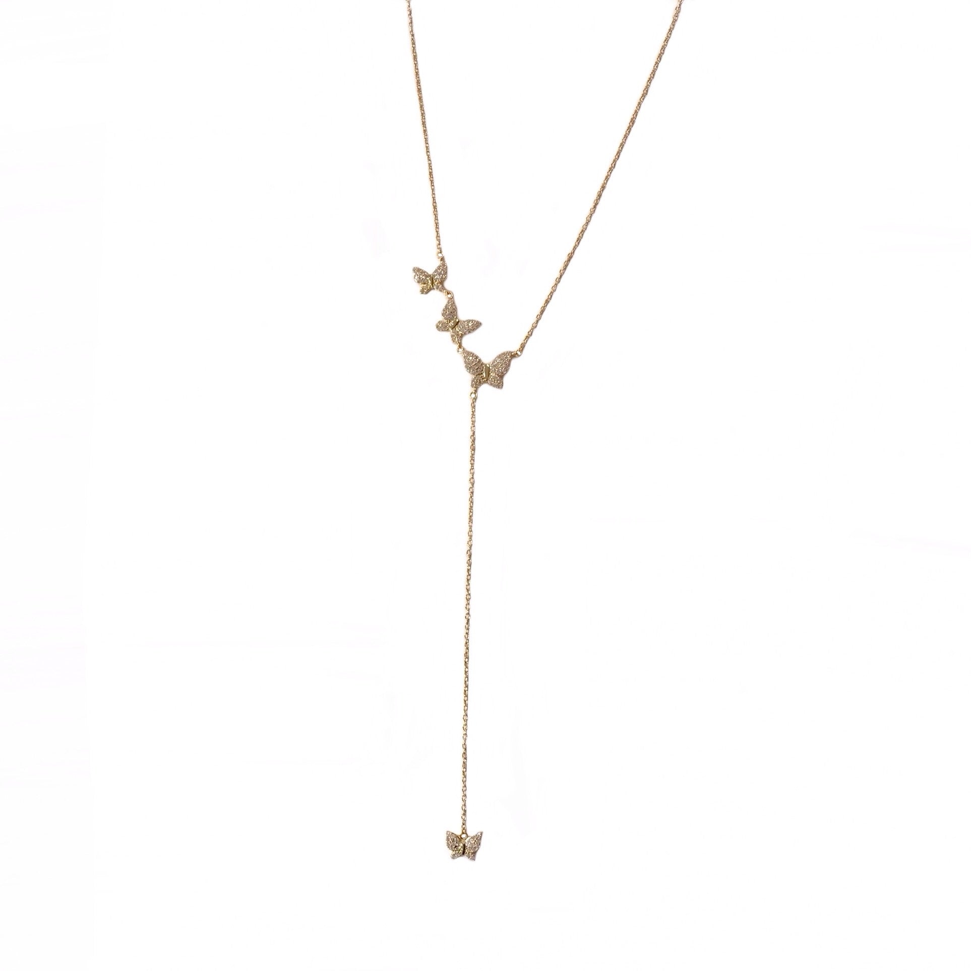 Spread your wings with elegance and beauty while adorning our glamorous Butterfly Lariat Necklace! The lariat features three cubic zirconia paved butterflies that are linked together in the center with a single paved butterfly charm that dangles from the chain drop. A beautiful addition to your collection that can be worn dressed up or down with any low cut top!