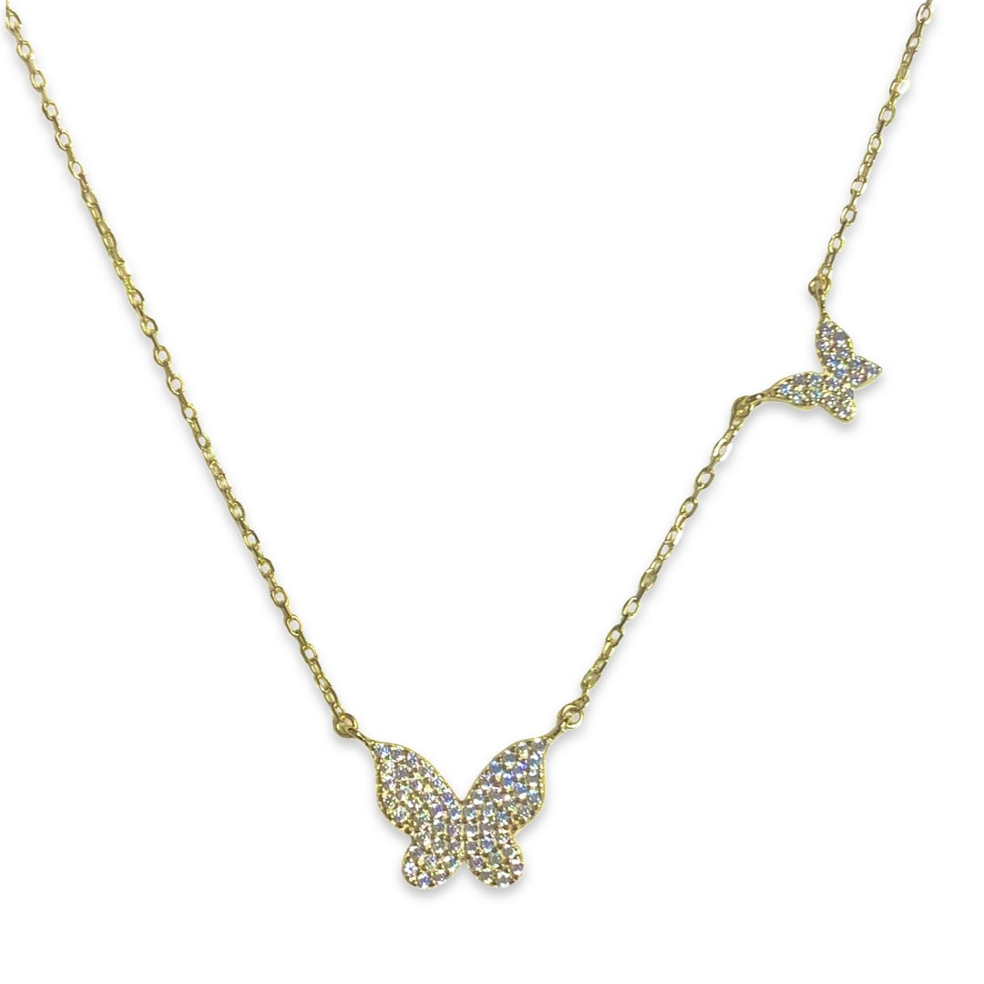 Spread your wings and flutter through the day with our Butterfly Necklace! Features 2 butterflies paved with cubic zirconia stones. A heart fluttering gift for your loved one that can be layered with our other Noellery necklaces or matched with our Noellery butterfly studs and rings!
