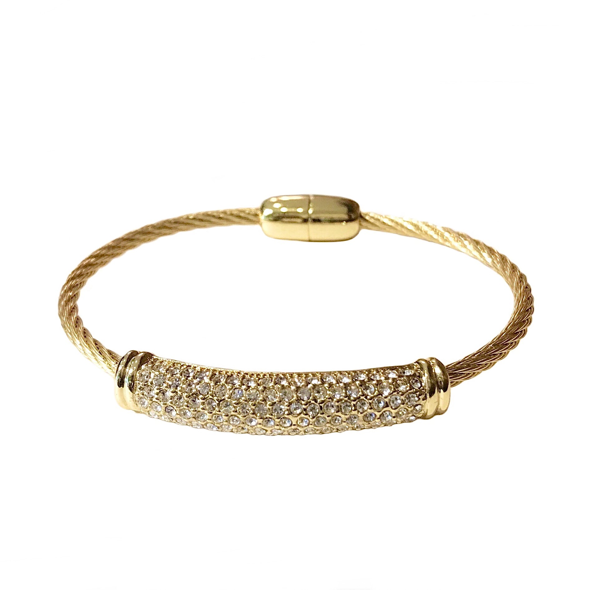 Let your wrist dazzle with our Dyana Cable CZ Bracelet! Features a magnetic clasp for a secure wear and a cable that is decorated in the front by a long cubic zirconia paved wrap. Wear these to any special occasion and try stacking it up with other Noellery bracelets or bangles to add an extra dash of sparkle!