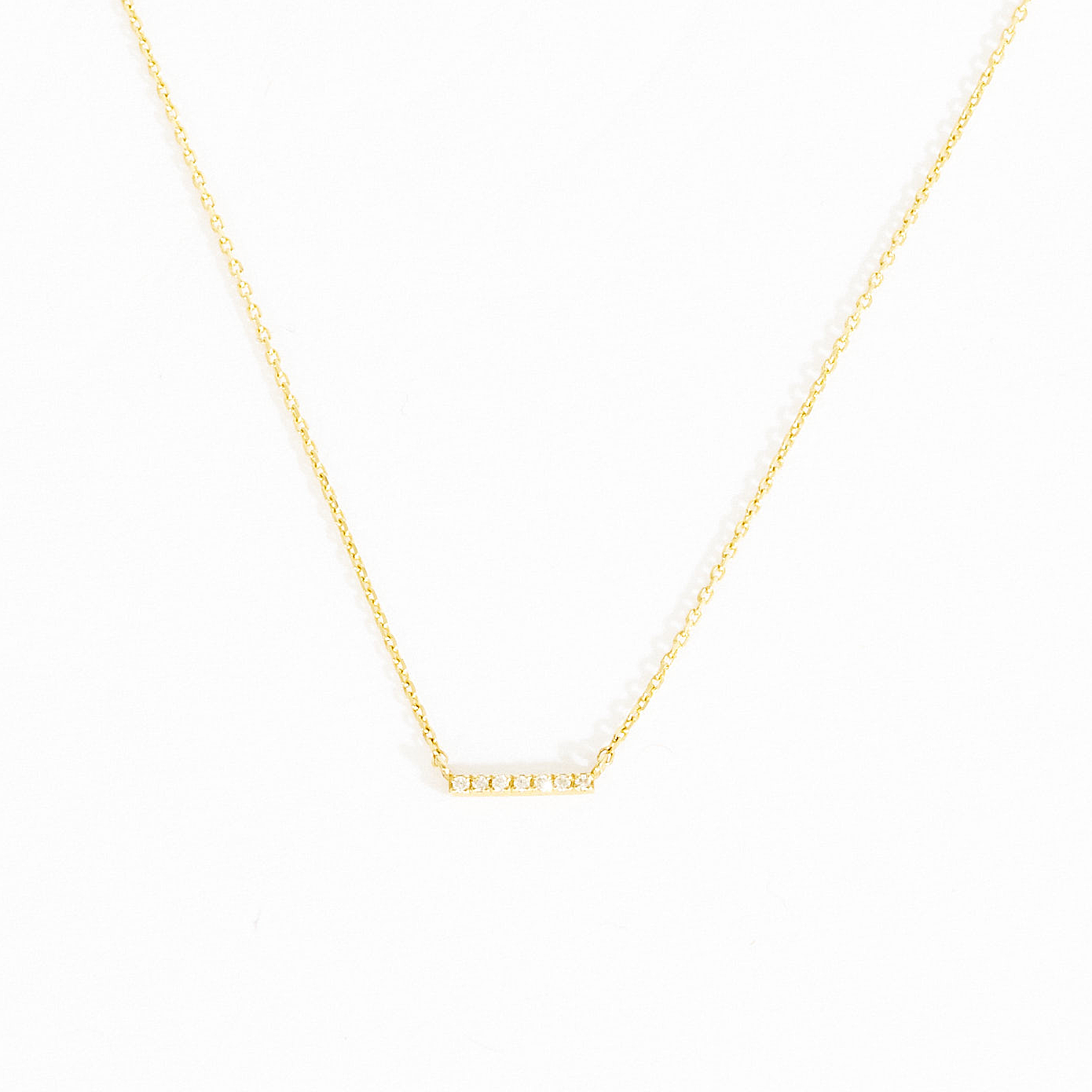 A forever piece that will endlessly sparkle and shine. Handcrafted in 14k solid gold, the dainty chain holds a delicate bar charm that is paved in dazzling diamonds. A minimalistic everyday necklace that you will never have to part with, layer it with other delicate and trendy pieces for her.