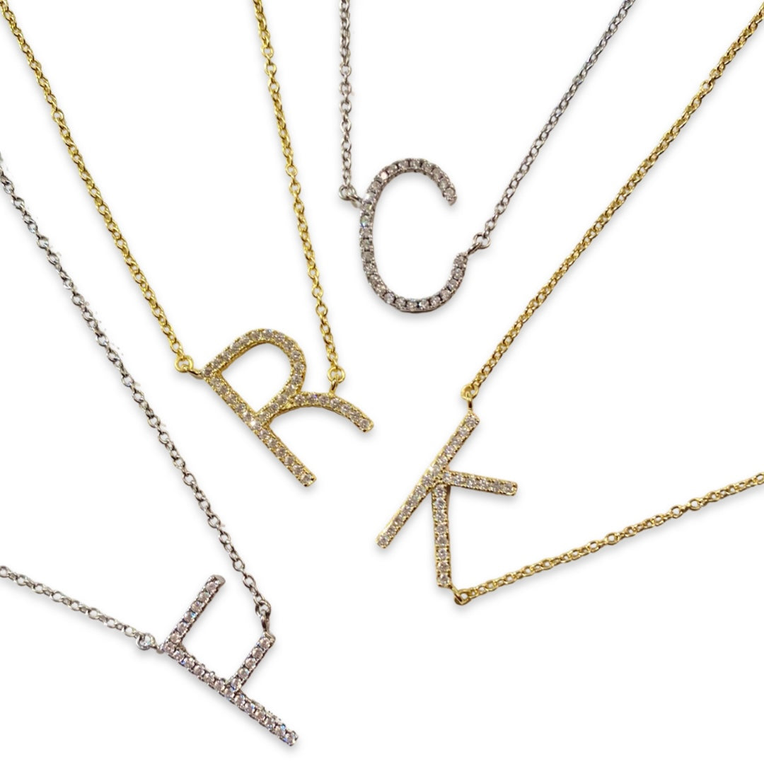 Sometimes, the best way to make a statement is to spell it out. A modern way to wear an initial that holds special meaning to you. This necklace features a letter that is paved with sparkly clear cubic zirconia stones. Dress it up or wear it casual, this necklace is a cute conversation starter!