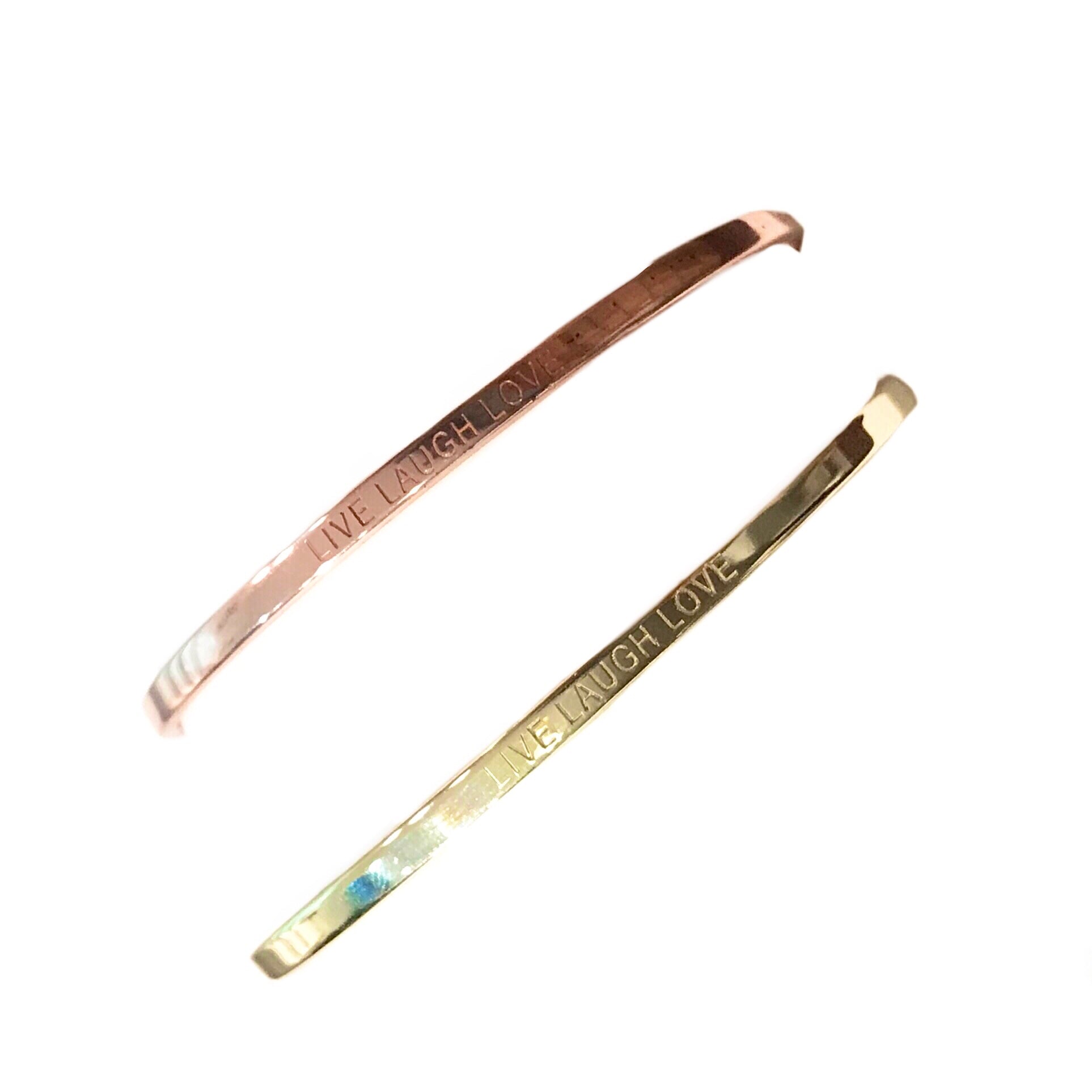 Show off your good vibes and adorn our Sterling Silver Mantra Bracelet on your wrist! Features an ellipse shaped sterling silver finish band that has the words "Live Laugh Love" engraved into it, as well as a hook type of clasp to secure it in place. Looks great when stacked with our other dazzling Noellery bracelets!
