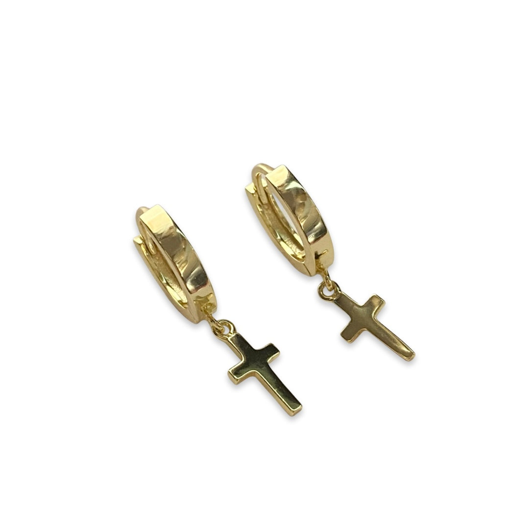 Our Plain Cross Huggies are the perfect everyday accessory for the spiritual! Features a plain huggie hoop with a small plain cross that dangles below. Makes a great gift for loved ones on any occasion. Can be worn alone or stacked with other Noellery earrings. Check out our other Noellery cross accessories to mix and match it up!