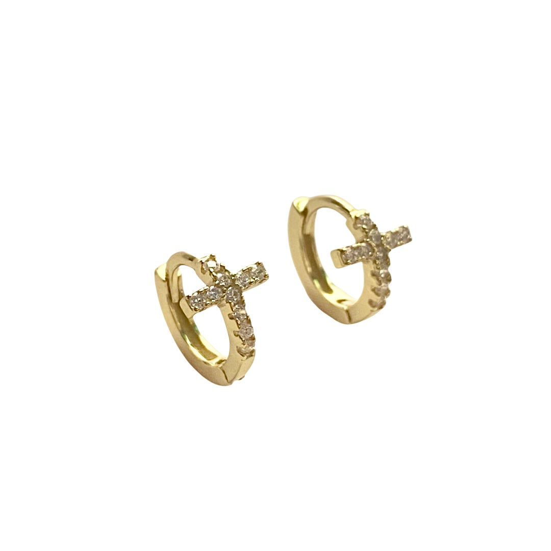 Adorn your lobe with a beautifully crafted sparkly pair of cross huggies. Hugs your lobe and sparkles at your every turn. For those with multiple piercings, looks great mixed with your ear stack.
