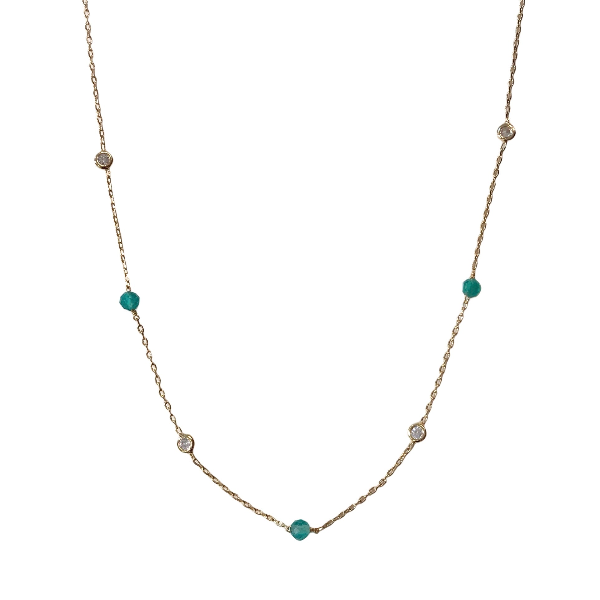 A darling necklace that can be worn alone or layered, throw on our Crysta Gemstone Necklace today! Features a dainty chain with tiny gemstone and cubic zirconia bezels stationed all around. The perfect everyday piece that can go with any dressy or casual outfit.