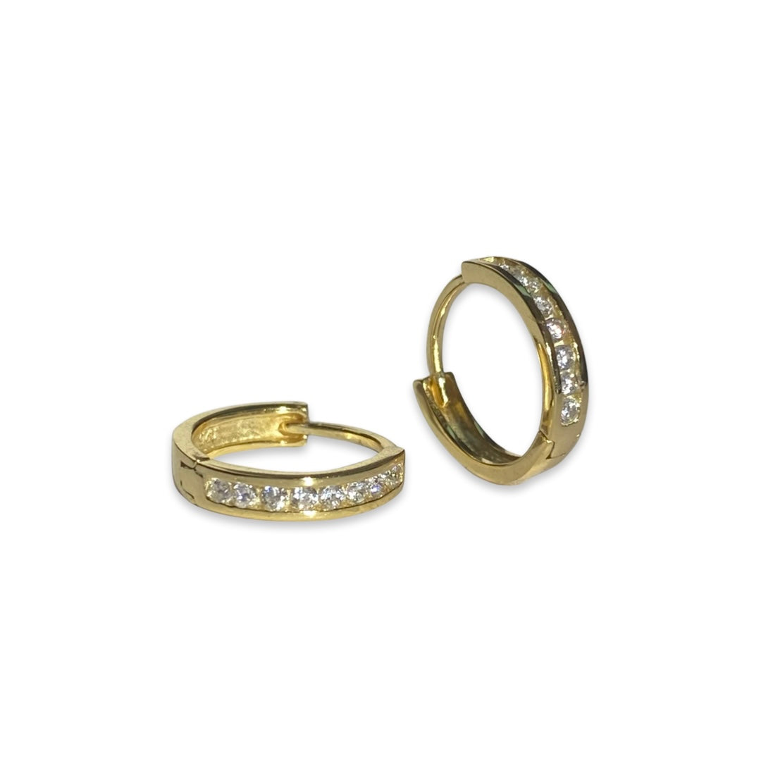 Adorn your lobe with a beautifully crafted sparkly pair of our Haggy Boxy CZ Huggies. Hugs your lobe and sparkles at your every turn as the huggie is channeled with sparkling cubic zirconia stones. For those with multiple piercings, looks great mixed with your ear stack.