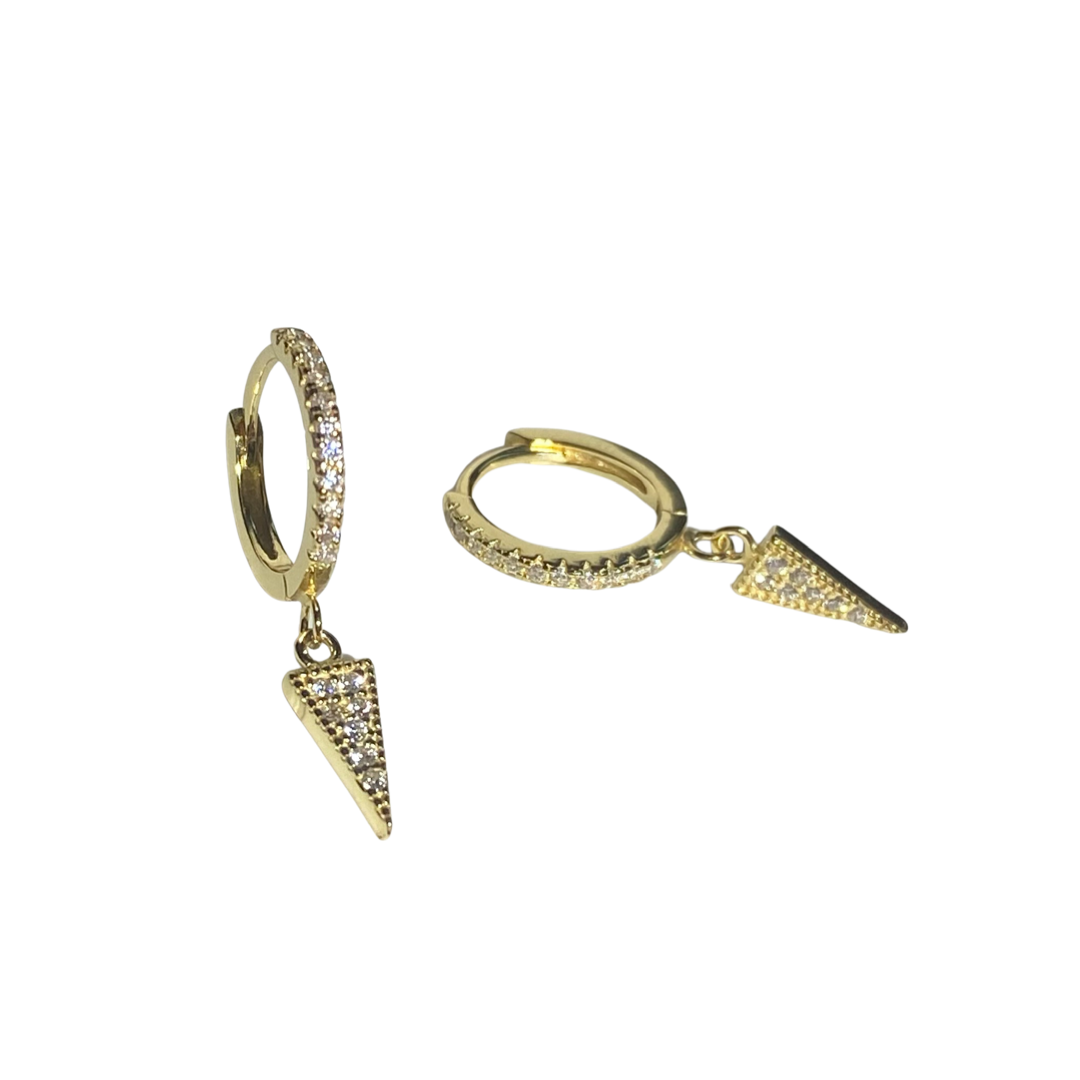 Adorn your lobe with a beautifully crafted Haggy Spike Huggies. Features a cubic zirconia paved huggie hoop and spike charm that dangles and sparkles with every turn. For those with multiple piercings, looks great mixed with your ear stack.