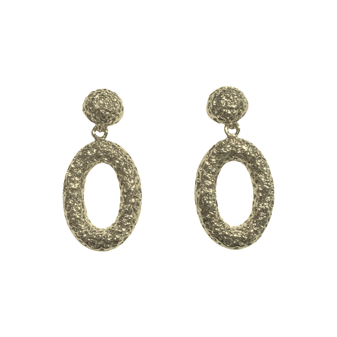 For the modern and trendy woman out there, slip on our chic Deandra Hammered Oval Earrings! Features a hammered metal oval disc drop that dangles from a ball post. The crinkled metal design gives the earrings a glimmering reflection that will add the right splash of shine to your outfit from day to night.