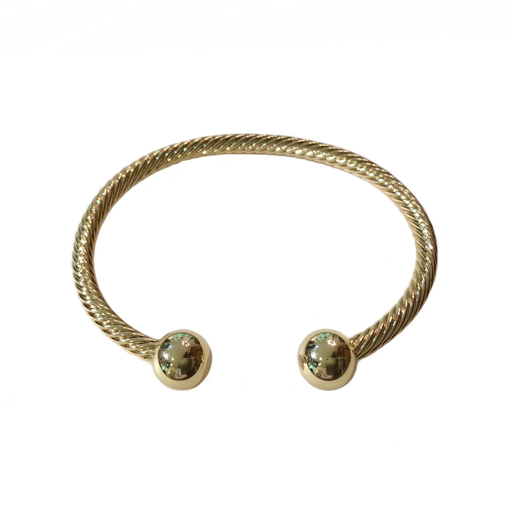 Our Dyana Ball Cuff is the perfect accessory for those looking for a chic yet simplistic look! Features a open cable cuff with a ball on each end so wearing this cuff is easy and smooth. Can be worn alone or stacked with other Noellery bracelets or cuffs to add some glamour to your wrists!