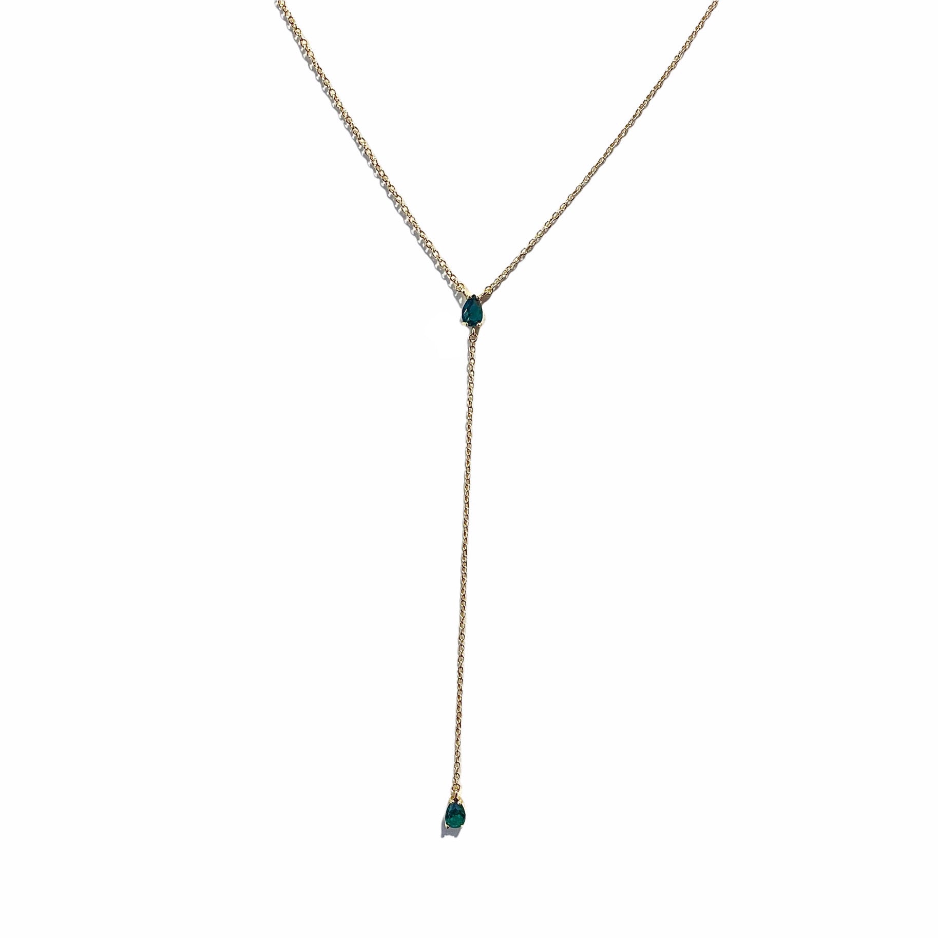 Layer on our Laura Teardrop Lariat Necklace today! Features a stunning cubic zirconia teardrop gem that hangs on a dainty gold chain. The birthstone for May is emerald, so this makes a great gift for the May babies.