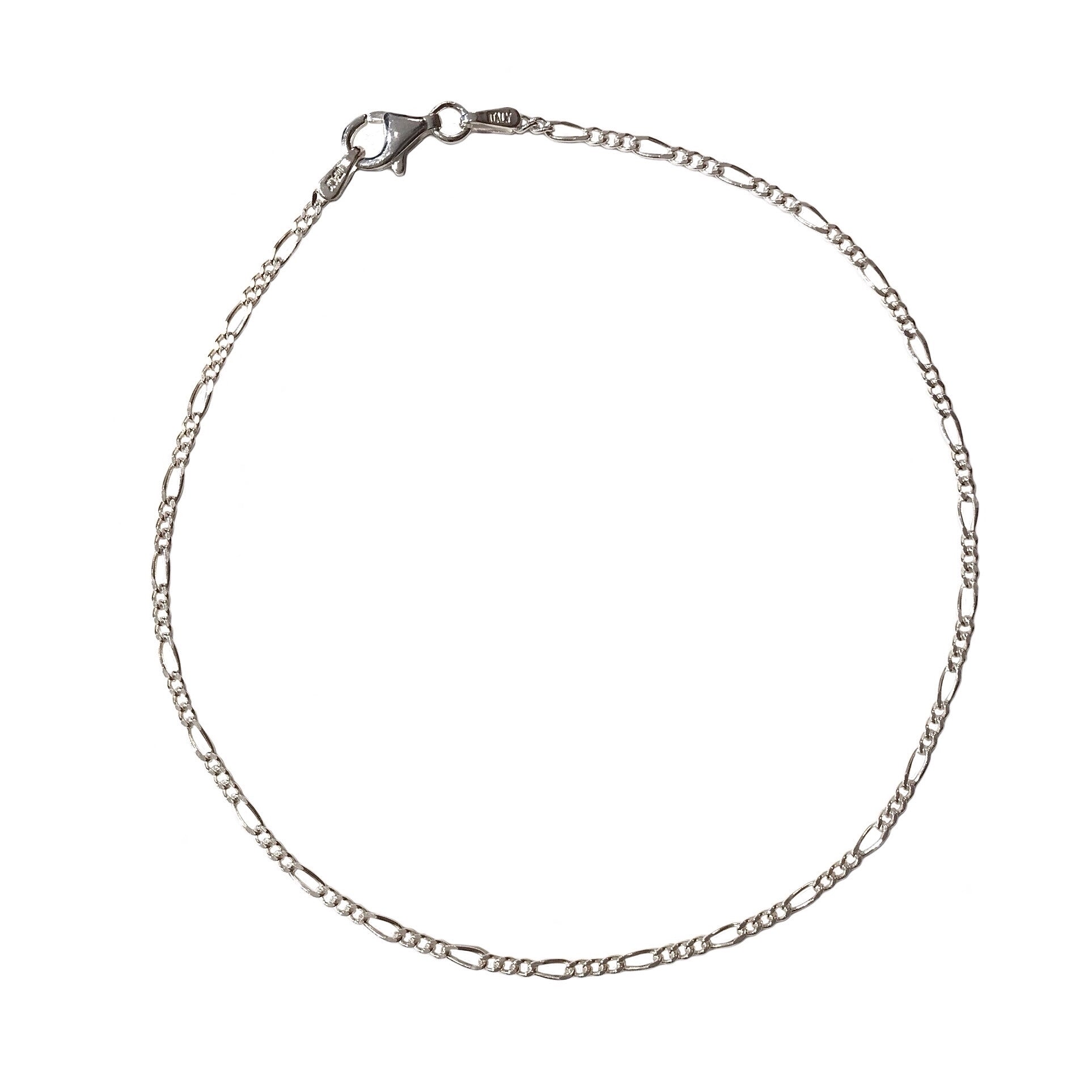 Dress your feet up with our simple figaro link anklet. Features a row of shiny links, that wraps around your foot comfortably. Makes a great everyday anklet for the modern woman.