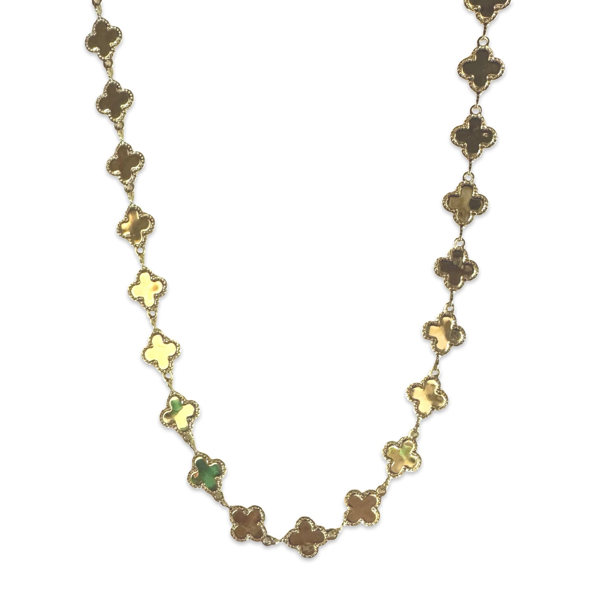 Slip on our petal shaped chain necklace that showcases a channel of metal motifs. May easily be layered with other Noellery necklaces, or may be worn solo on its own.