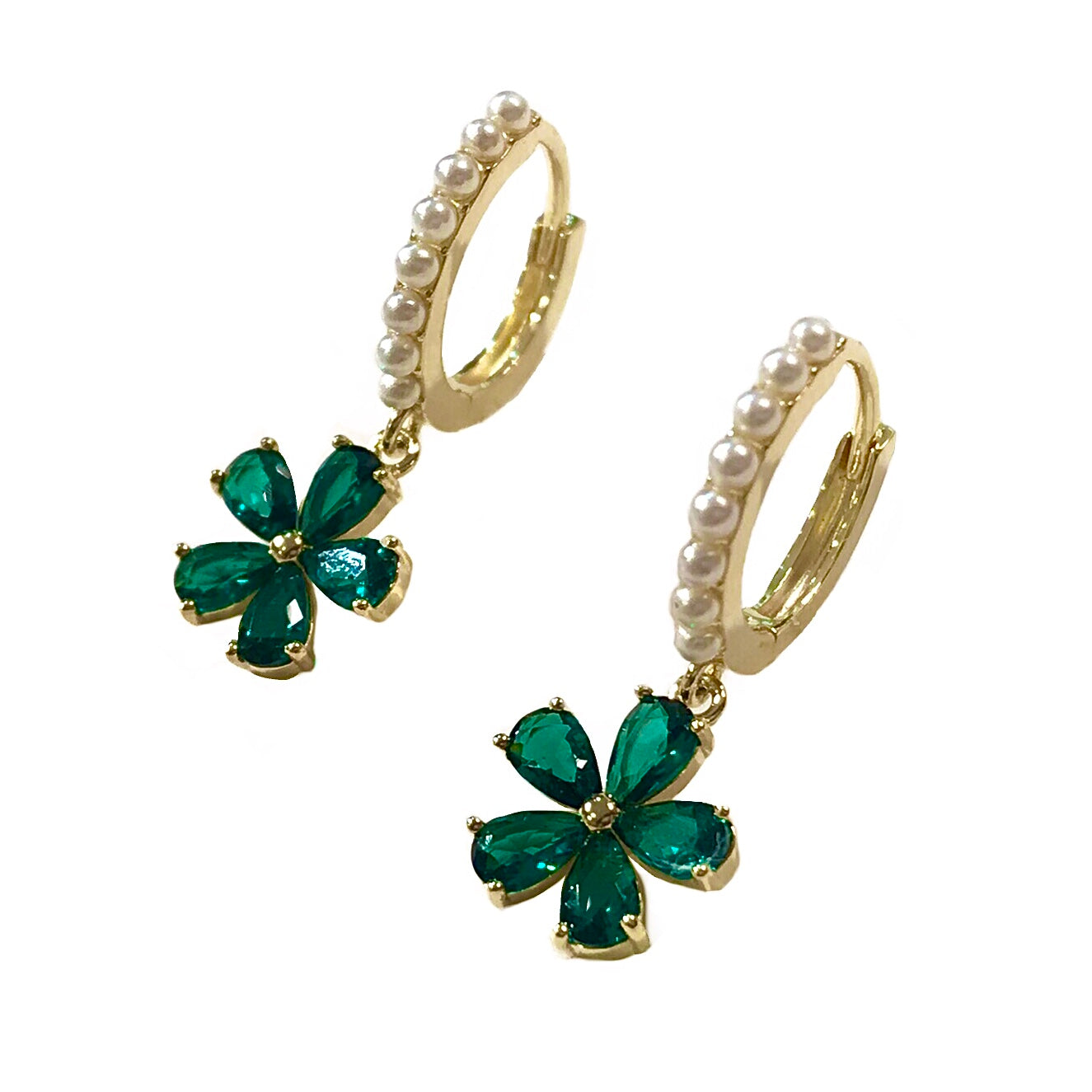 Add some blossoming elegance to your ears by throwing on a pair of our shimmering Flower Pearl Huggies! Features a sterling silver huggie hoop that is dotted with dainty pearls along the front. Dangling from the huggie is a flower charm that is made up of teardrop shaped cubic zirconia stones. A darling earring that can be worn alone or stacked with other stylish Noellery earrings or ear cuffs!