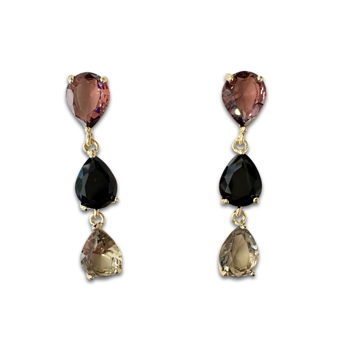 An eye-catching statement earring that stands out from the crowd, throw on a pair of our Geometric Teardrop Drop Earrings! With a clear teardrop stone stud at the top, the rectangle-shaped colorful stone drops from it, followed by another colored stone in the shape of a teardrop, creating a striking combination. Give this to loved ones for any occasion—it would make a lovely addition to any fashionable woman's jewelry box!