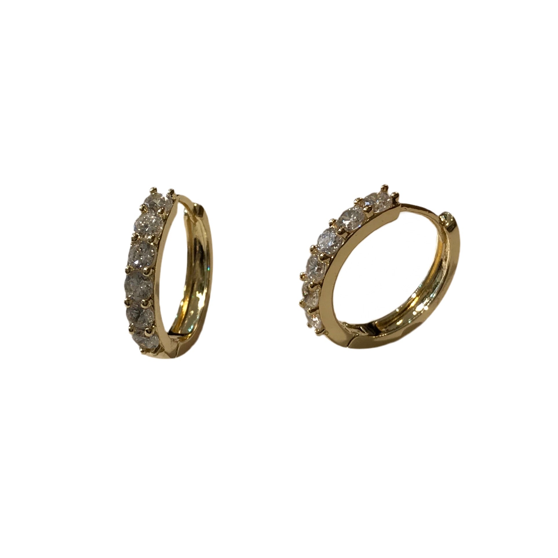 Add to your collection of staple ear accessories with our sparkly 6 Prong Huggie Hoops! Features a shiny gold huggie with six cubic zirconia stones set in a prong setting along the front. A classy pair of huggies that look great on their own, or can be stacked with other dazzling Noellery earrings! Dresses up and casual everyday outfit.