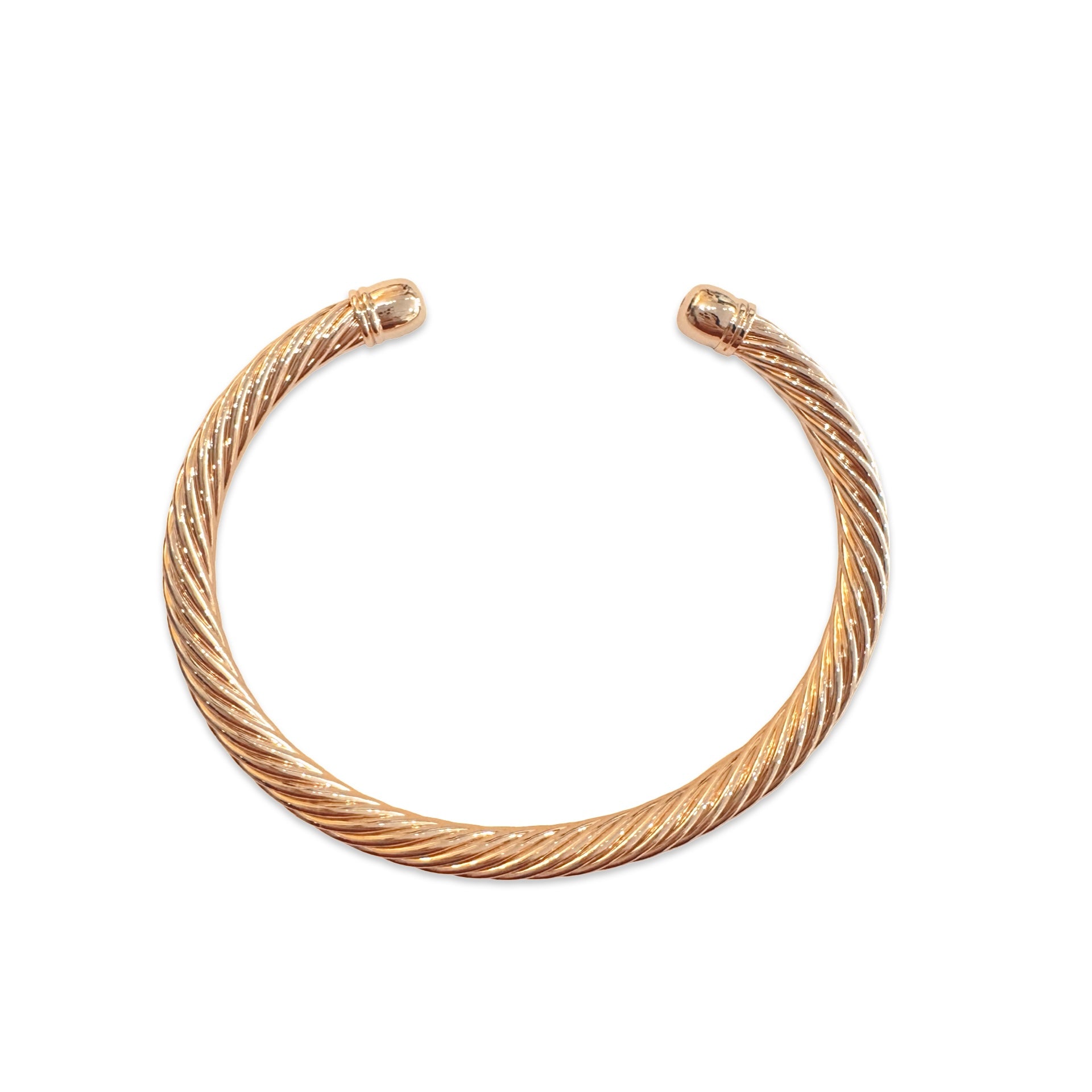 Our Dyana Twist Cuff is the perfect accessory for those looking for a chic yet simplistic look! Features a open cable cuff with a ball on each end so wearing this cuff is easy and smooth. Can be worn alone or stacked with other Noellery bracelets or cuffs to add some glamour to your wrists!