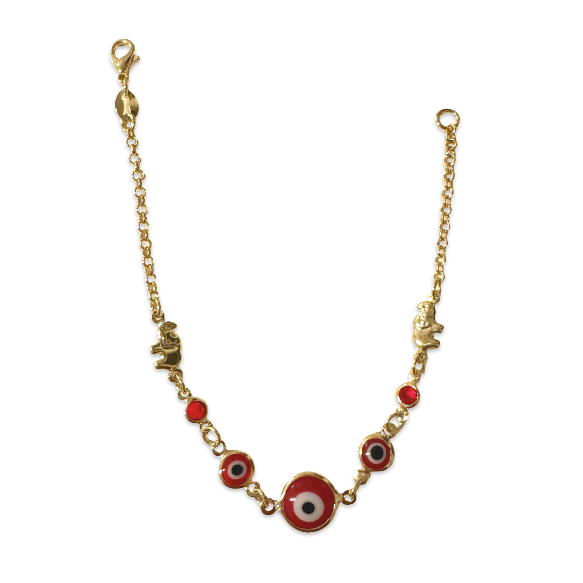 Slide on our Gold Filled Evil Eye Bracelet for the perfect everyday accessory to ward off evil energies and grant the wearer protection throughout the day. Features evil eye & elephant charms that wrap around your wrist. Add it to your wrist stack or wear it solo everyday!