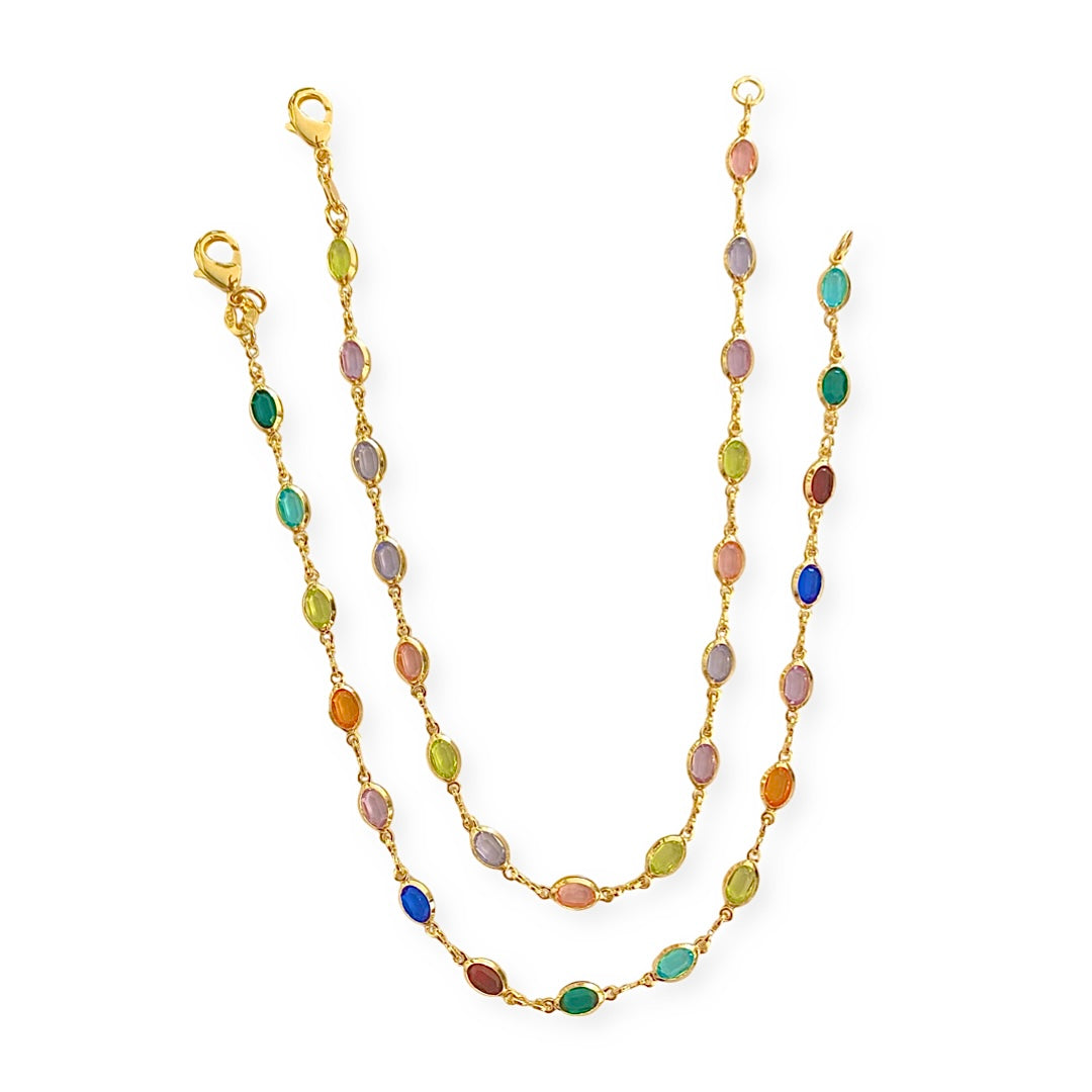 Enjoy our colorful and elegant Oval Rainbow Bezel Anklet. Features oval shaped bezels that wrap around your feet comfortably and will shine with every step. It's perfect to wear on any occasion and an amazing go-to gift for a special someone!
