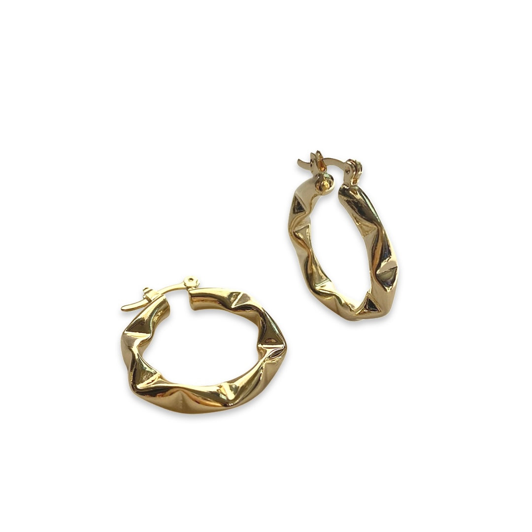 A chic hoop for the trendy fashionistas, throw on our Wavy Thick Hoops to add an accent to your outfit! The wavy, gold filled hoop features a hinged clasp closure for secure wear throughout the day. Looks great worn alone or stacked with other shiny and shimmering Noellery earrings to complete your look!