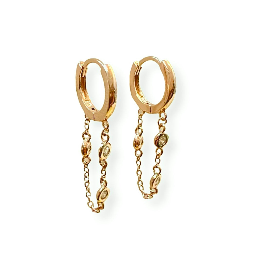 Wrap your ears with our must have draped huggies. These huggies feature three cubic zirconia bezels that drape beneath the hoop to create a dramatic look. Swaying with every step you take, these huggies can be worn together with other Noellery earrings or other huggies to create a dazzling earring stack!
