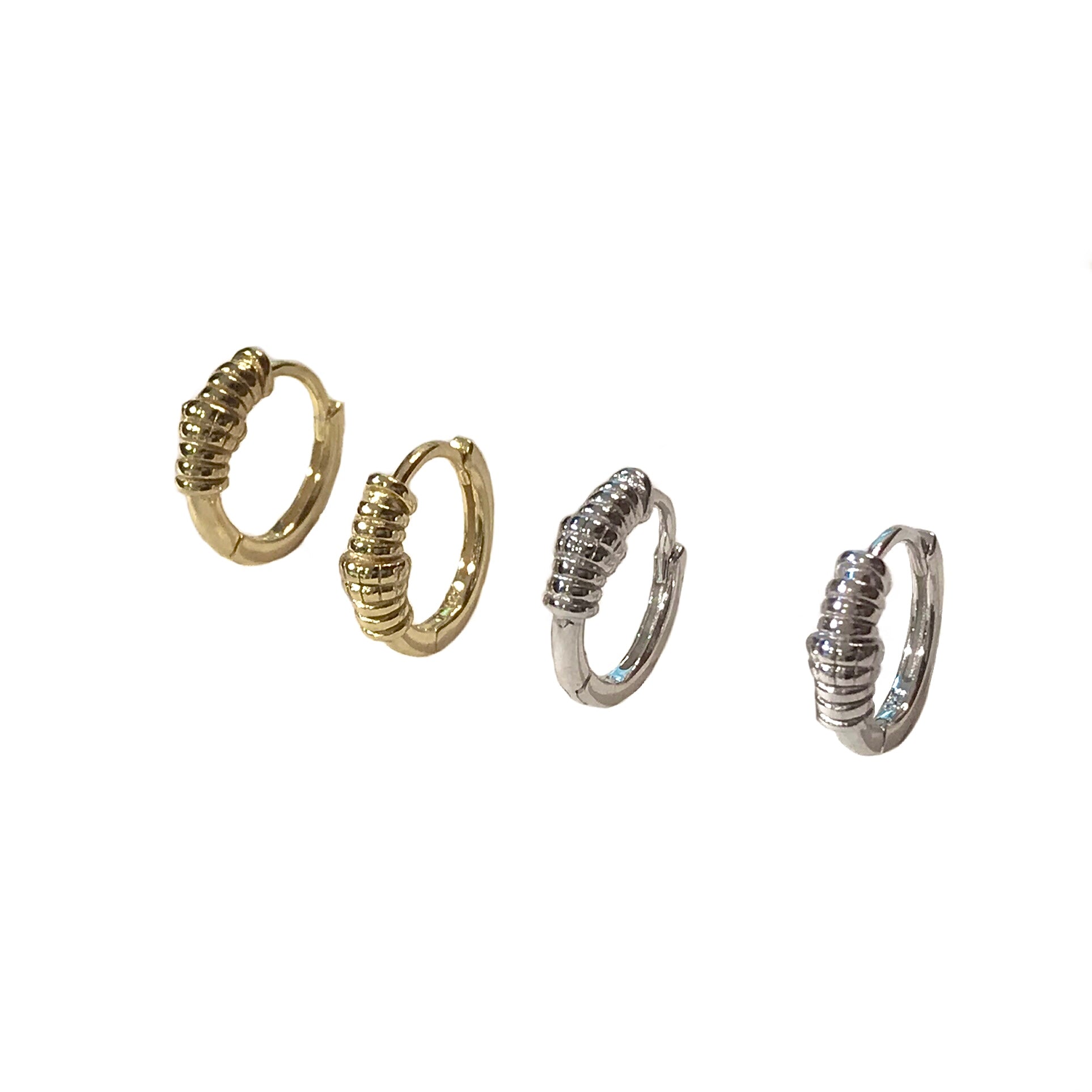 Adorn your lobe with a beautifully crafted plain pair of Wrapped Huggies. Features sleek metal hoops design wrapped around the shiny sterling silver huggie that will hug your lobe comfortably. Easy to take on and off with a quick snap. For those with multiple piercings, looks great mixed with your ear stack.