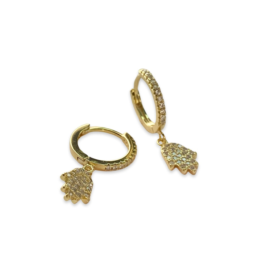 Adorn your lobe with a beautifully crafted sparkly pair of Hamsa huggies. These hoops hug your lobe and sparkles at your every turn. For those with multiple piercings, looks great mixed with your ear stack. Equally as beautiful when worn on its own as well.