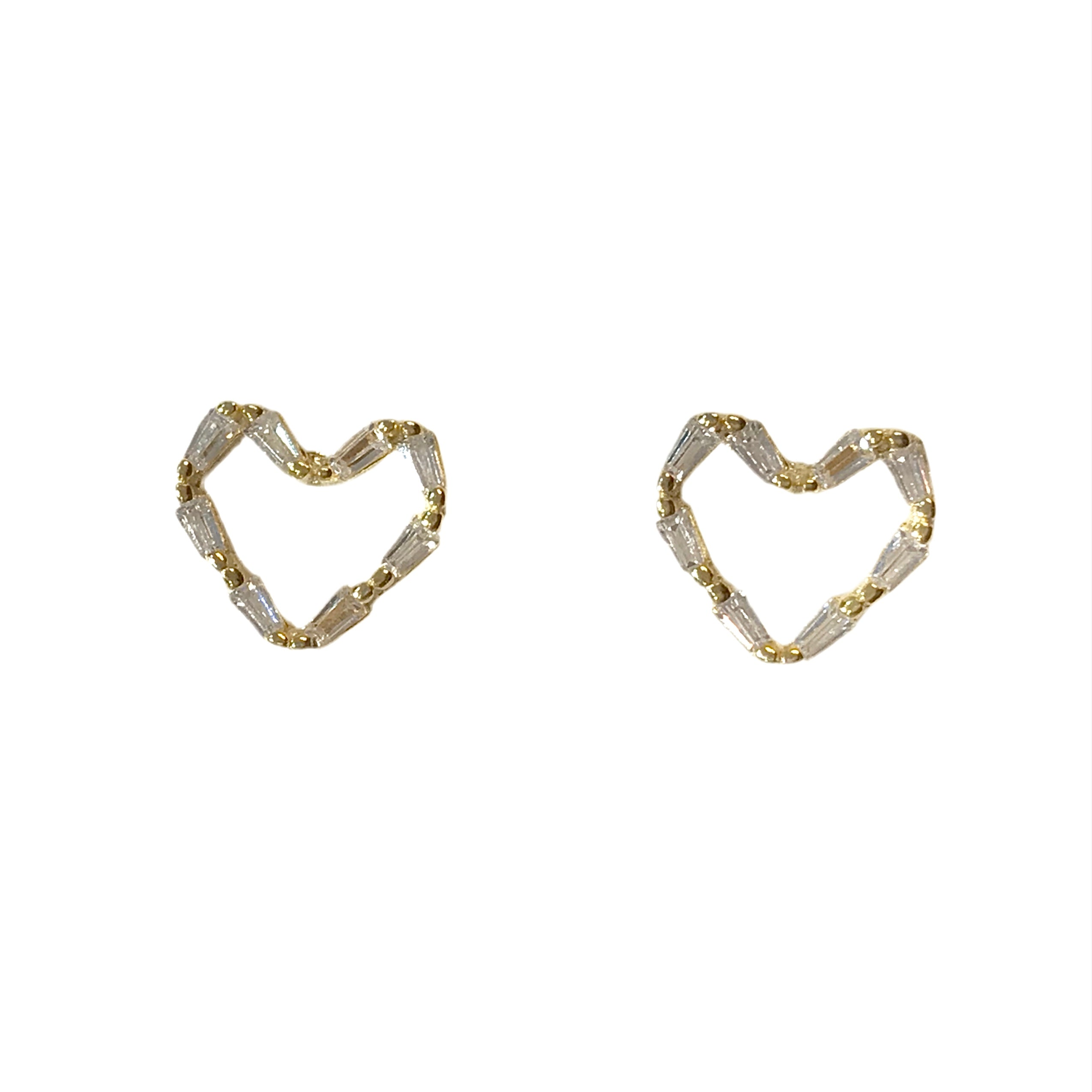 Shimmering stones to elevate your ear stack, throw on a pair of our Heart Baguette Outline Earrings. Features a cubic zirconia baguette shaped stones that form the shape of a heart. Wear alone or with other Noellery earrings to create a darling ear stack, these earrings are perfect for everyday wear and goes well with any outfit. Makes a lovely gift to loved ones on any occasion.