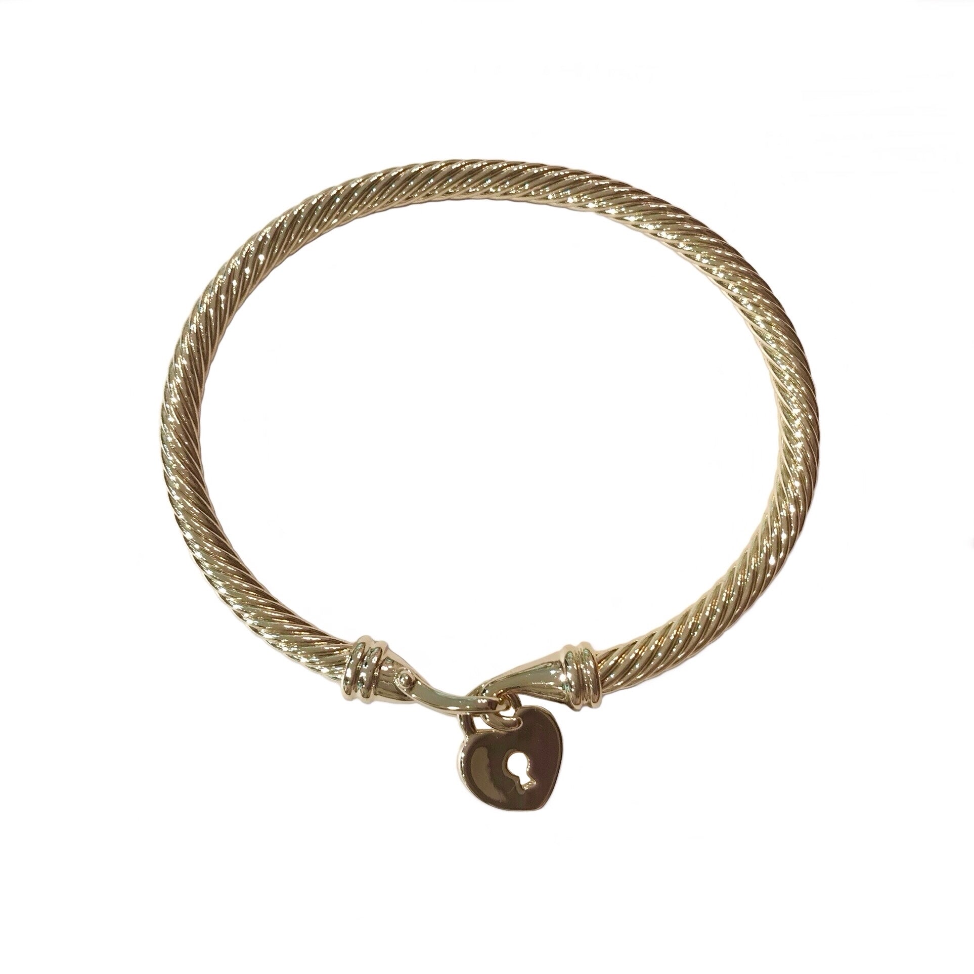 Adorn our Heart Lock Clasp Bracelet to style up your wrist! Features a thick open cable cuff with clasps at each end for a secure wear with a cute heart lock charm. Makes a great everyday accessory and can be stacked with other Noellery bangles and bracelets for that sleek chic style with an edge.