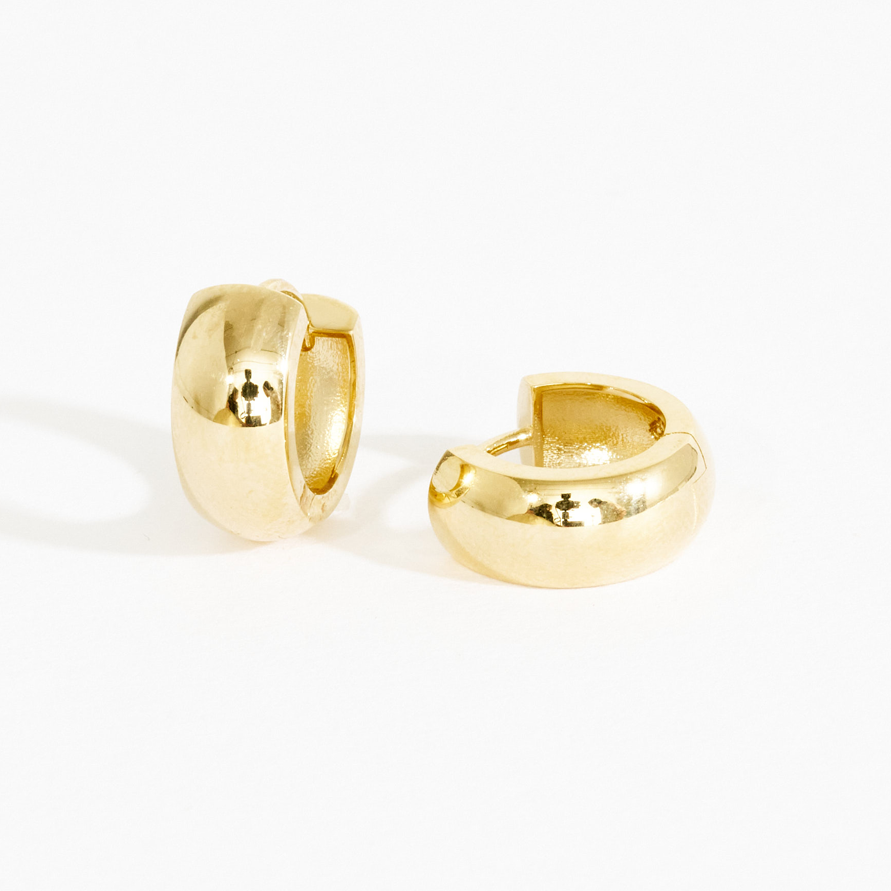 A modern huggie to add a unique style to any ear stack, you will never wish to leave these timeless huggies behind. Handcrafted in 14k solid gold, this polish to shine rounded huggie will make a charming everyday accessory to style your ears with. A everlasting addition to your chic ear stack, but looks great when worn alone.
