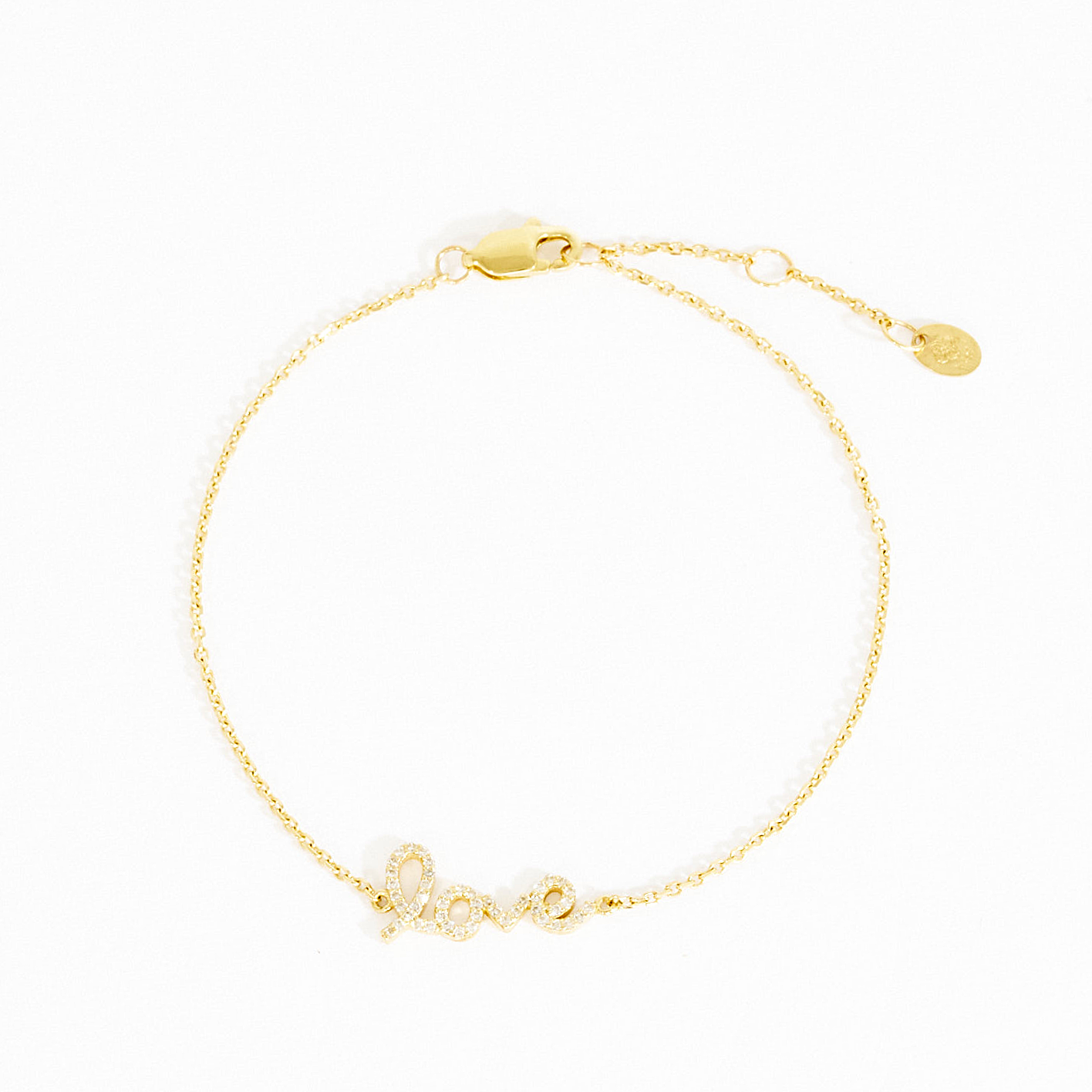 A simple piece that will wrap delicately around your wrist all day and night. Handcrafted in 14k solid gold, the cursive love pendant is paved with dazzling diamonds for a delicate touch of sparkle. A classy everyday bracelet that looks good worn solo or layered with other delicate pieces.