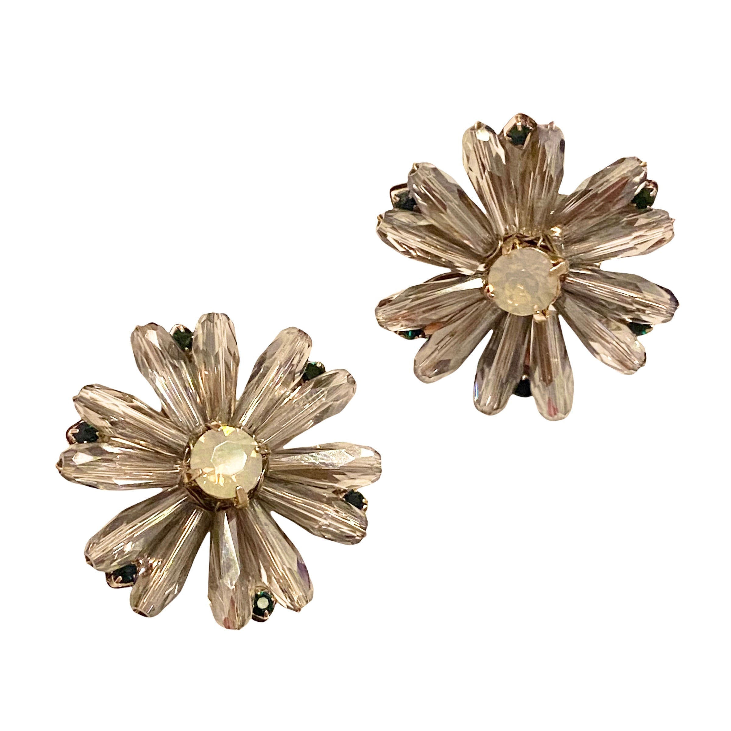 Embellish your ears with our handmade oversized Karen Crystal Flower Studs. Features petals of brilliant swarovski crystals that is accented with cubic zirconia stones in between. A gorgeous earring to adorn everyday or to any special event!