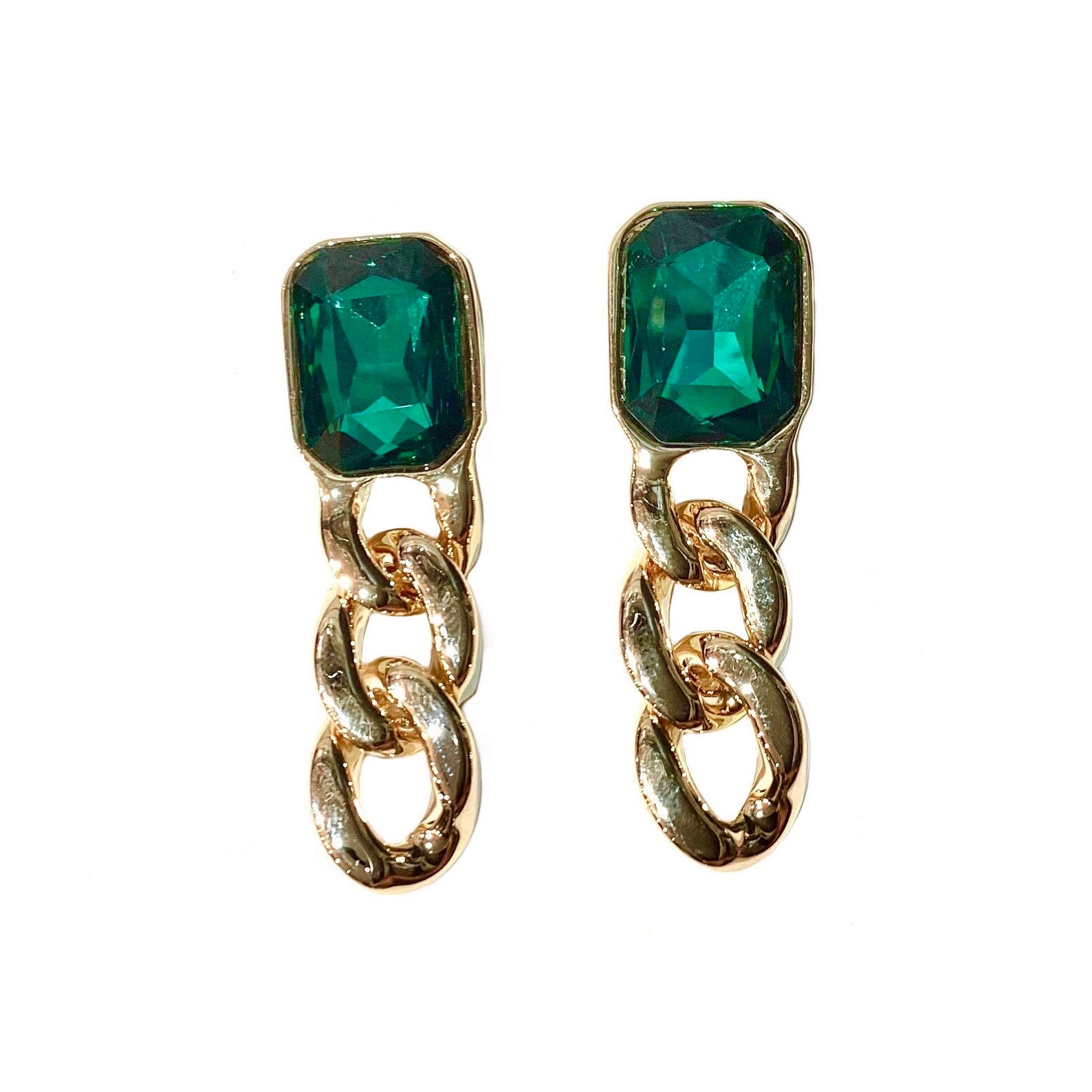 A classy statement piece to pull your whole outfit together, adorn our Kerry Bold Chain Studs today for an intricate and chic ear accessory! Hanging from the large crystal post-back stud is a thick cuban chain link that will sway with every step. A trendy piece for the fashionista, this statement earring looks great with any classy or casual outfit!