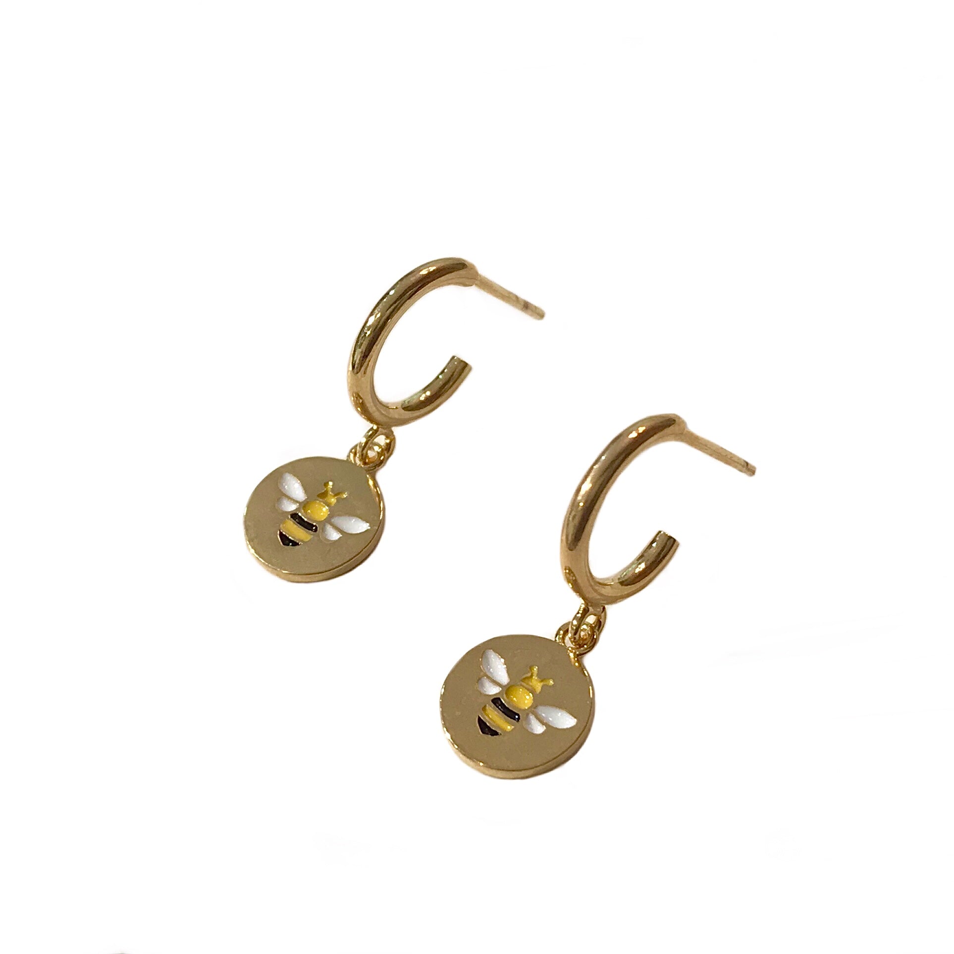 Get your hands on our charming Kerry Bumble Bee Hoops to complete that sweet ear stack! Features a shiny hoop with a disc charm dangling from the bottom. The disc has a small black and yellow bee design, swaying with your every step. The post back gives for easy and secure wear. Stack it with other Noellery earrings or wear it by itself. Makes a great gift to bee lovers for any occasion.