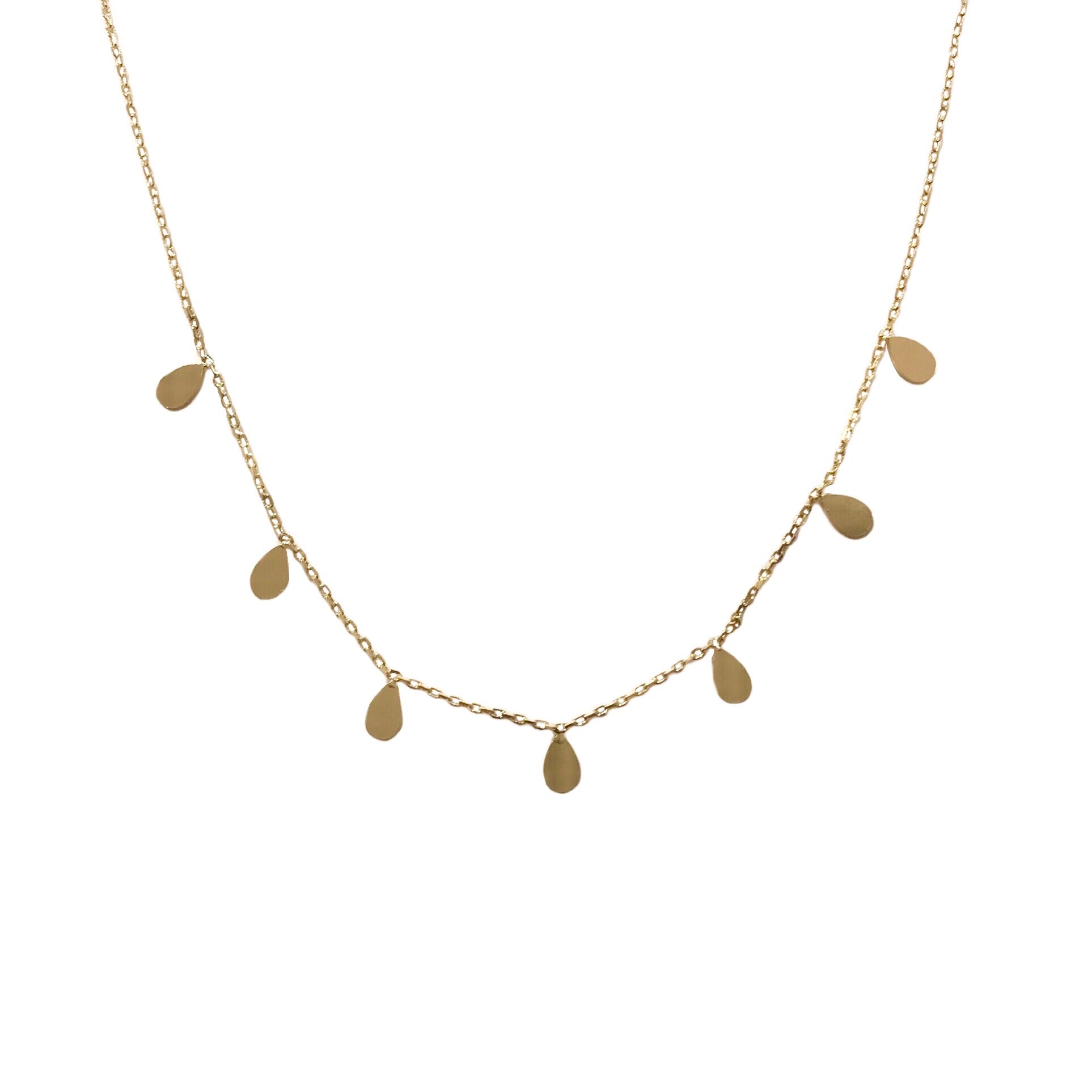 The perfect addition to any necklace layer, get trendy and layer it up with our Kerry Teardrop Dangling Necklace! Features 7 delicate teardrop charms that dangle gently from the dainty chain. Worn with other Noellery necklaces or by itself, this Teardrop Necklaces is what every fashionista needs to complete their look!