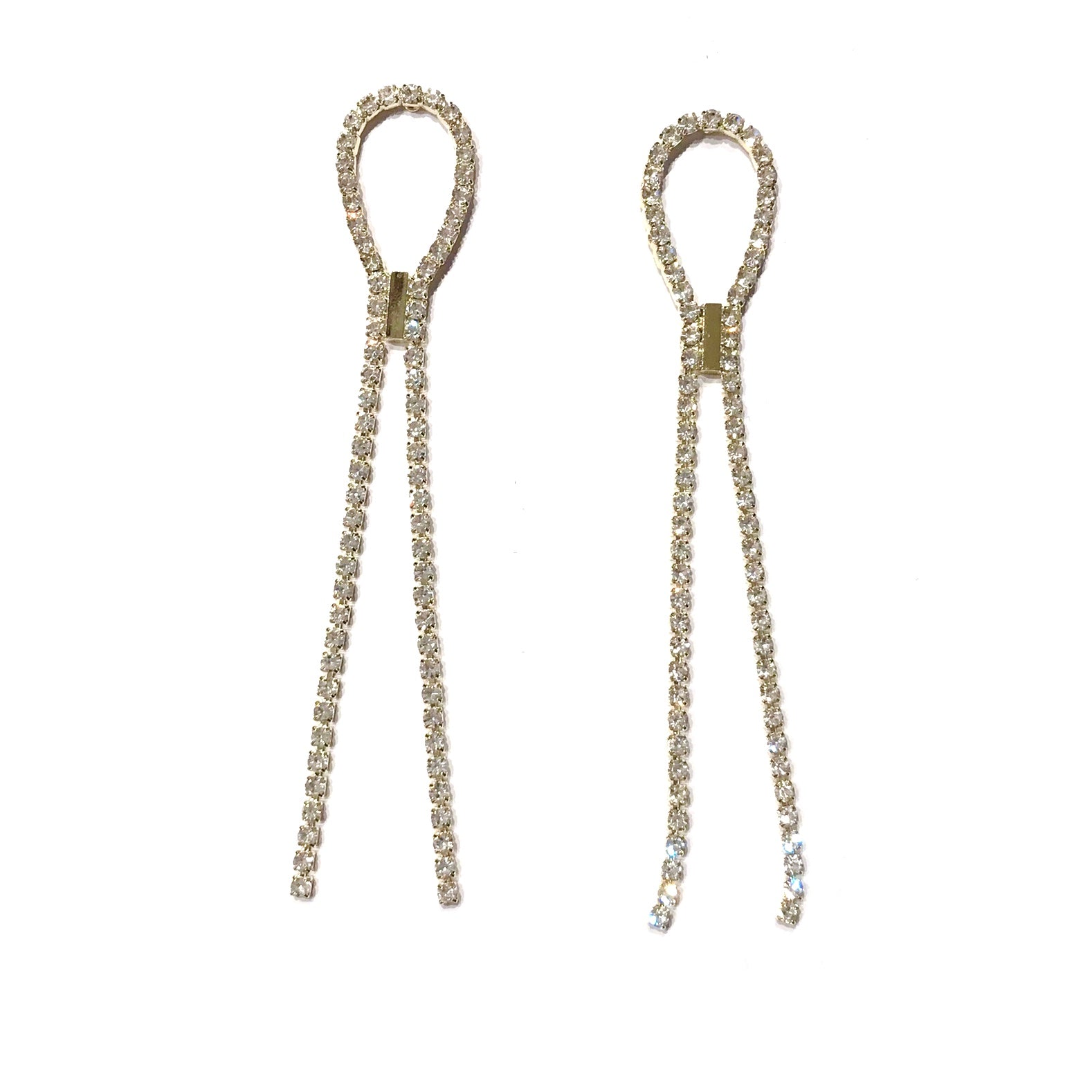 Sparkle and shine with our dainty Krista Ribbon Earrings. Features a cubic zirconia ribbon loop outline that falls gently from your lobe. Adds the perfect amount of shimmer for the fashion forward woman, and lightweight enough to wear everyday.